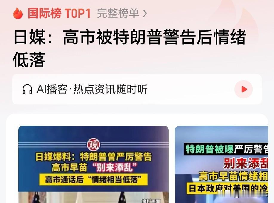 只能说早知如此,何必当初!之前行事高调、处处强硬,说白了就是没看清自己的位置,如今被特朗普当面警告,心里委屈低落,本质上是为自己的“冒进”买单。 就像没人管的狗狗乱咬人,要么被狠狠教训,要么付出更惨痛的代价,特朗普这次警告就是“敲山震虎”,没下狠手已经是留了余地。 高市之前大概率是顺着对方的意思行事,本以为能捞到好处,没想到风向一变,自己成了被推出来“灭火”的人,那种落差感换谁都难受。 说白了这就是利益交换里的现实,用得到你时百般拉拢,不需要你造势了就立刻敲打约束,既让你认清边界,也借机彰显主导权。 高市这波应该是明白了,没足够实力支撑,盲目跟风,跳得越高,摔得只会越疼。