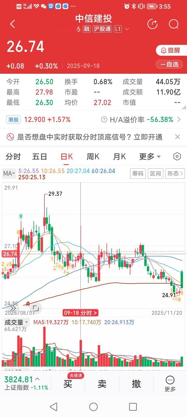 中信建投,实在像头犟牛神兽,不管指数收阴收阳,它只是一路阳下去。算起来到今天为止,中信建投已经连收十三阳了。 中信建投,今天收盘继续逆势上涨0.90%,收盘价26.83元,还上榜了券商股涨幅排行榜第二名。而且今天的高点27.19元已经平了10月29日的高点了,是不是有点神! 今天中信建投今天的成交金额放大到11.42亿元,与9月18日的天价天量11.90亿元已经相差无几了,是否意味着中信建投的这波莫名其妙的步步高升十三连阳要告一段落了呢?