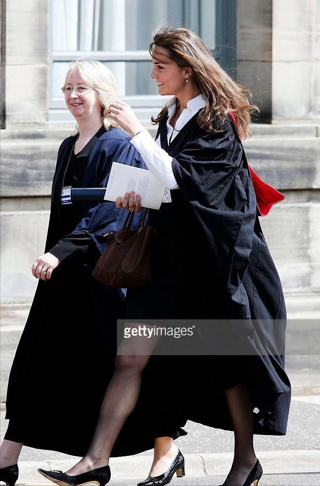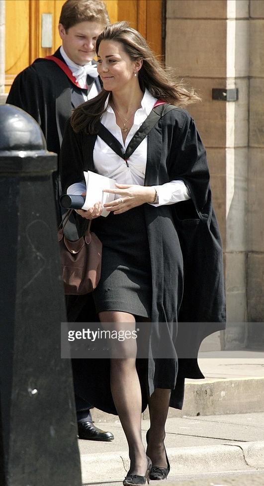 凯特王妃大学毕业照,那时的她青春靓丽,比现在更有活力! 2005年6月23日,凯特.米德尔顿结束了为期四年的大学生活,正式从圣安德鲁斯大学毕业。 这组照片就是凯特在毕业典礼上的照片,她穿着白色衬衫,搭配黑色A字裙,非常简洁的职业装造型。比起她陪着威廉王子夜店狂欢时的样子,可谓是知性干练很多。 淡雅的妆容,披着学士服,大学毕业的她也是青春靓丽,那时的她虽然不如如今成为王储妃一样优雅贵气,但是丰腴有致的身材,肉嘟嘟的脸庞,阳光健康,却比如今更显活力。