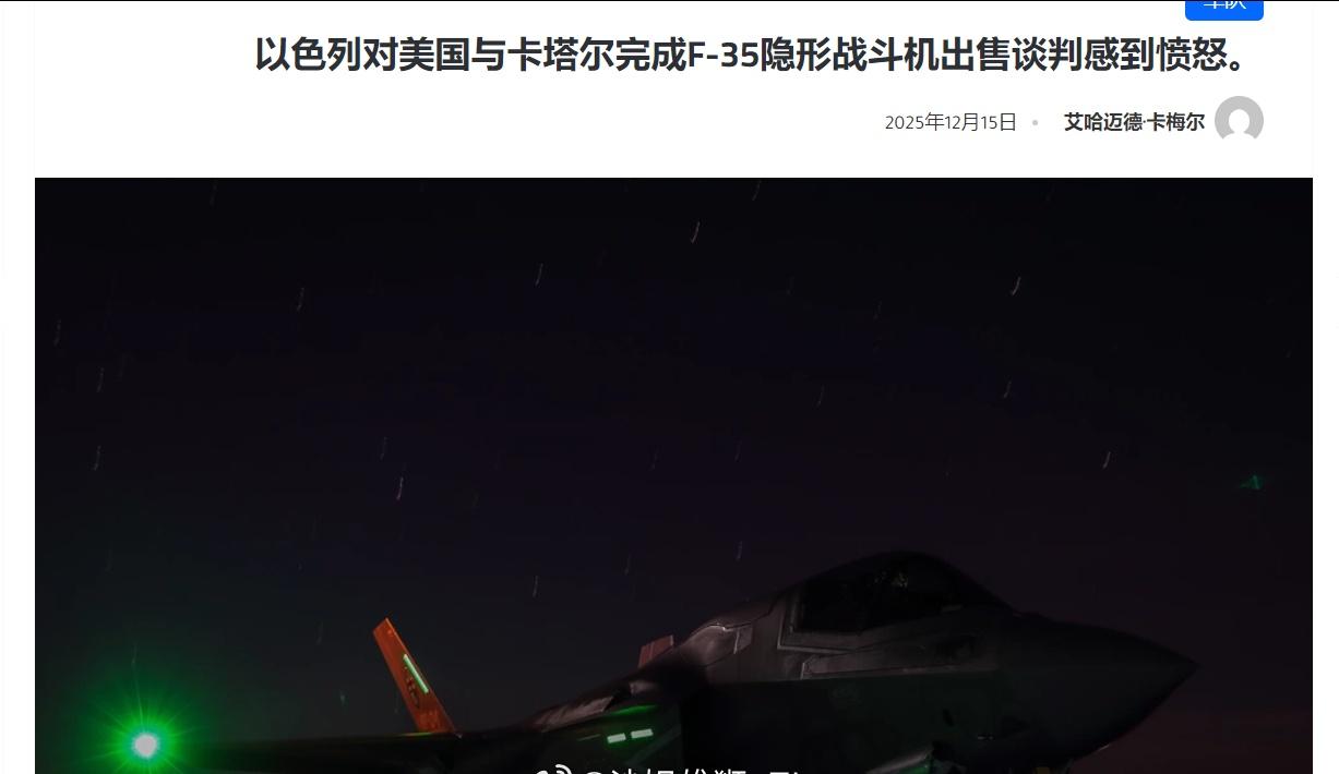 媒体报道,以色列对于美国向卡塔尔出售F-35战斗机的相关谈判进展感到愤怒。