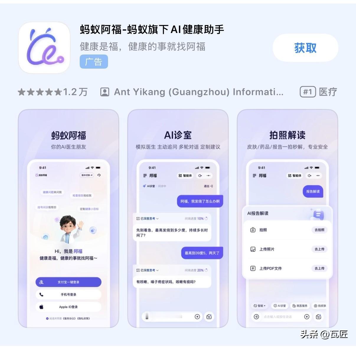 12月15日品牌升级发布后,蚂蚁阿福仅用24小时就冲上苹果应用总榜第三位,月活突破1500万,日均解答500万+健康咨询,成为健康管理AI领域绝对领跑者。