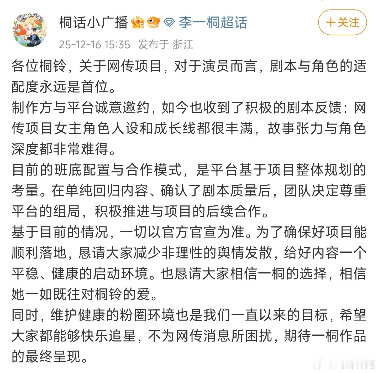 李一桐对接回应《金枝》。陈星旭也是挺神奇的,一部播放量也不高的东宫居然吃到现在