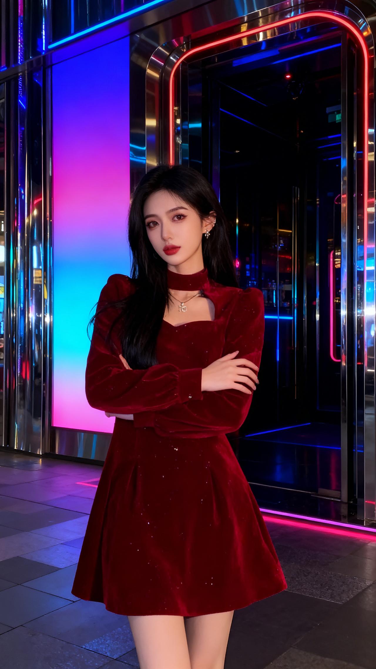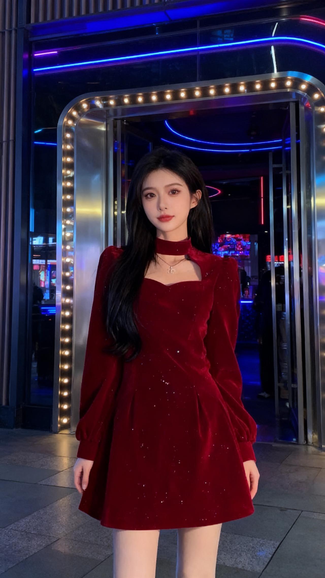 连衣裙丝绒新年穿搭 温柔穿搭 红色连衣裙