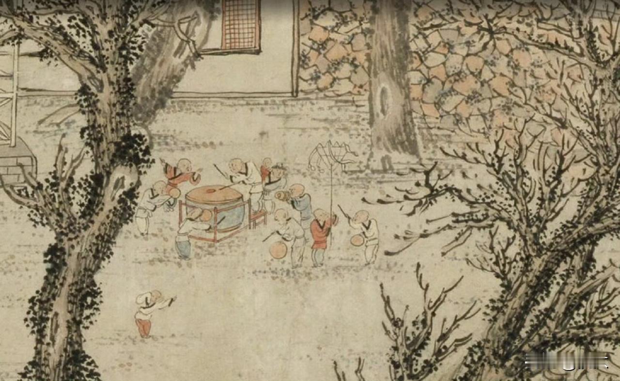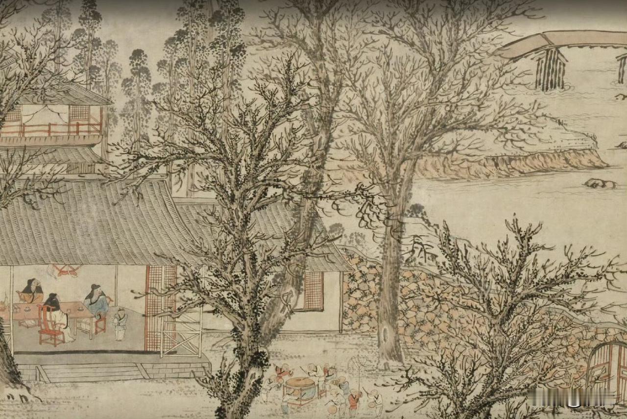 “岁朝”是一年的开端,一岁之始。袁尚统画的《岁朝图》,岁月静好的样子。沅汰博物馆 “丙申春日客于竹深处”这是画上的款识。某个猴年,在家宴客,看着小孩子们玩得高兴,很像我小时候家里过年的样子,那时候我是画上的小孩,看着我们玩的应该是我爷爷。过年的时候家里常有客人,和我爷爷熟识常来作客的几位爷爷我也都很熟。 这幅画上长者们一桌共饮,看着庭院里的孩子们敲锣打鼓、放鞭炮,玩的尽兴、看的也尽兴。画风亲切质朴。