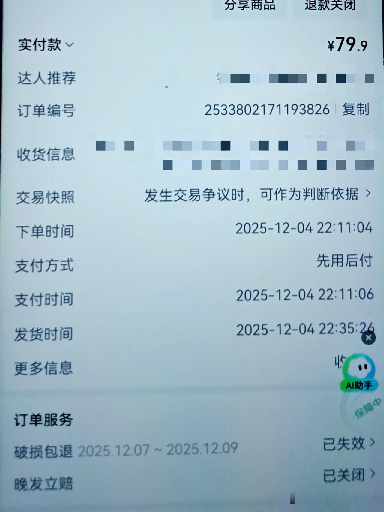 邻居大姐退货被扣79.9!有运费险还翻车,这操作绝了💥 12月4日晚,邻居大姐兴冲冲下单一件羊毛绒衣,满心盼着过年添身新衣服。 7号收到货发现不合适,当晚就申请了退款退货,商家爽快同意,页面上还明明显示着有运费险、运费宝、7天无理由退货保障。 8号当天快递员上门取件,取件码核对得清清楚楚,大姐本以为这事儿稳稳妥妥没毛病。 谁料9号晚上21:01,退货订单竟被直接取消,大姐当时也没留意这事。 直到14日晚22点35分,一条79.9元的扣款通知弹出来,她才彻底慌了神——订单页面同时显示签收、交易成功、退款失败,三个状态搅成一团乱麻,看得人一头雾水。 找客服追问,得到的说法更离谱:订单取消原因是没有运费! 可明明有运费险加持,取件码也正常核验,怎么就成了"没运费"? 更让人费解的是,快递员取走货后压根没发出去,客服还建议重新下单再退货,这波操作直接把我们整懵了。 客服还老问大姐有什么诉求? 大姐始终就是一句就把钱给我就可以了,不投诉不追责,只想要回被扣的钱,可这事儿愣是卡在快递和平台的衔接上,到现在也没解决。 无独有偶,大姐之前买了件纯羊毛衣,货不对板就申请退货,快递员上门竟要求出示身份证! 说是平台要求的,大姐机智推脱说没在家里,转头来找我吐槽。 咱就想不通了,退个货而已,为啥要查身份证(衣服到现在还没有退,我看要凉凉12月9号下的单退货衣服)? 大姐总说网上买东西便宜还能退,比逛实体店省心,可这接连踩坑,真是让人看着都心疼。 上了岁数的人,玩不转这些线上的操作,遇到问题只能干着急,身边没个人搭把手,太不容易了!心酸。 退货踩坑 网购避雷 老年人网购心酸 民生关注 民生热点 消费者维权