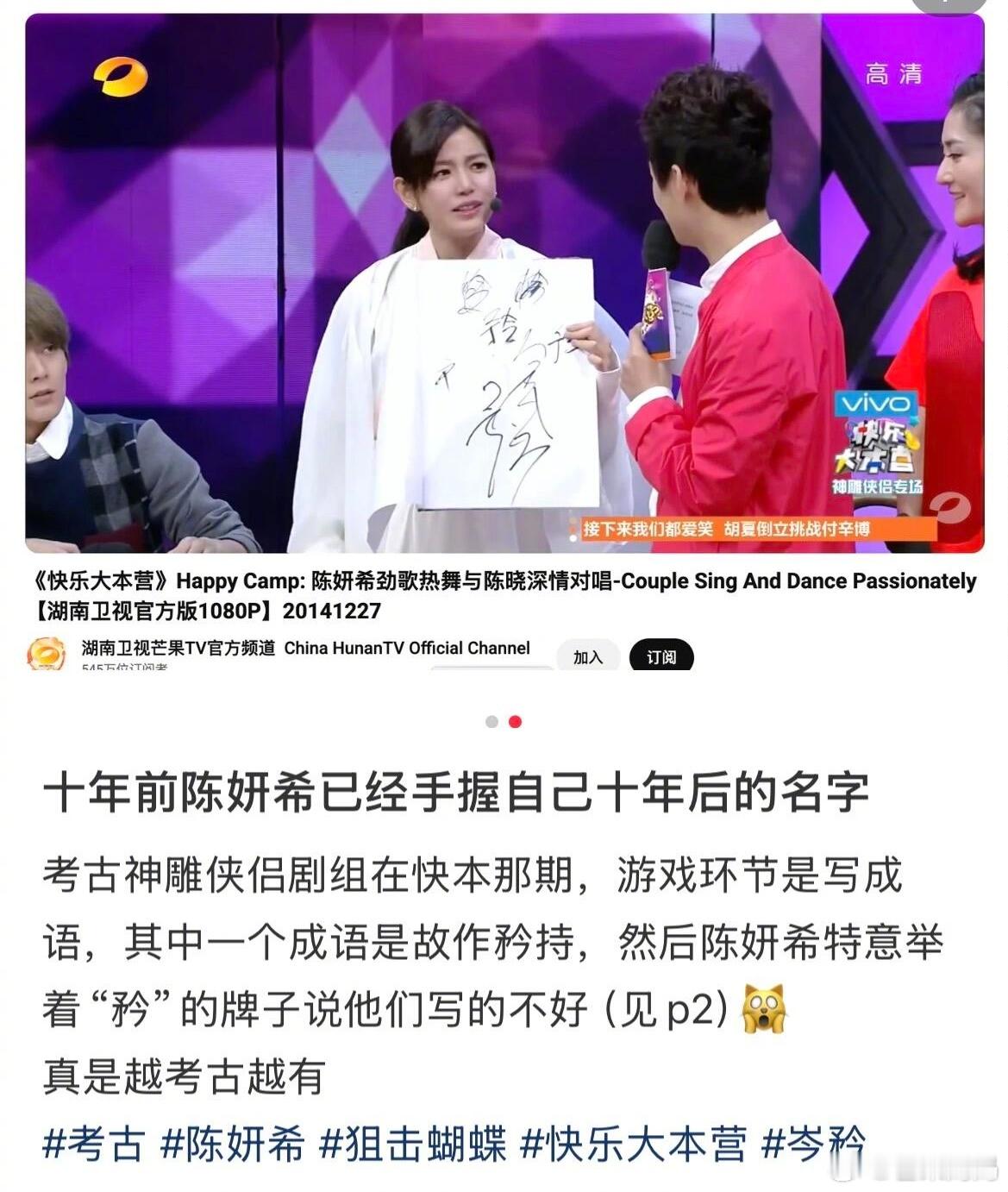 又一个羁绊,十年前陈妍希在快本拿着“矜”字