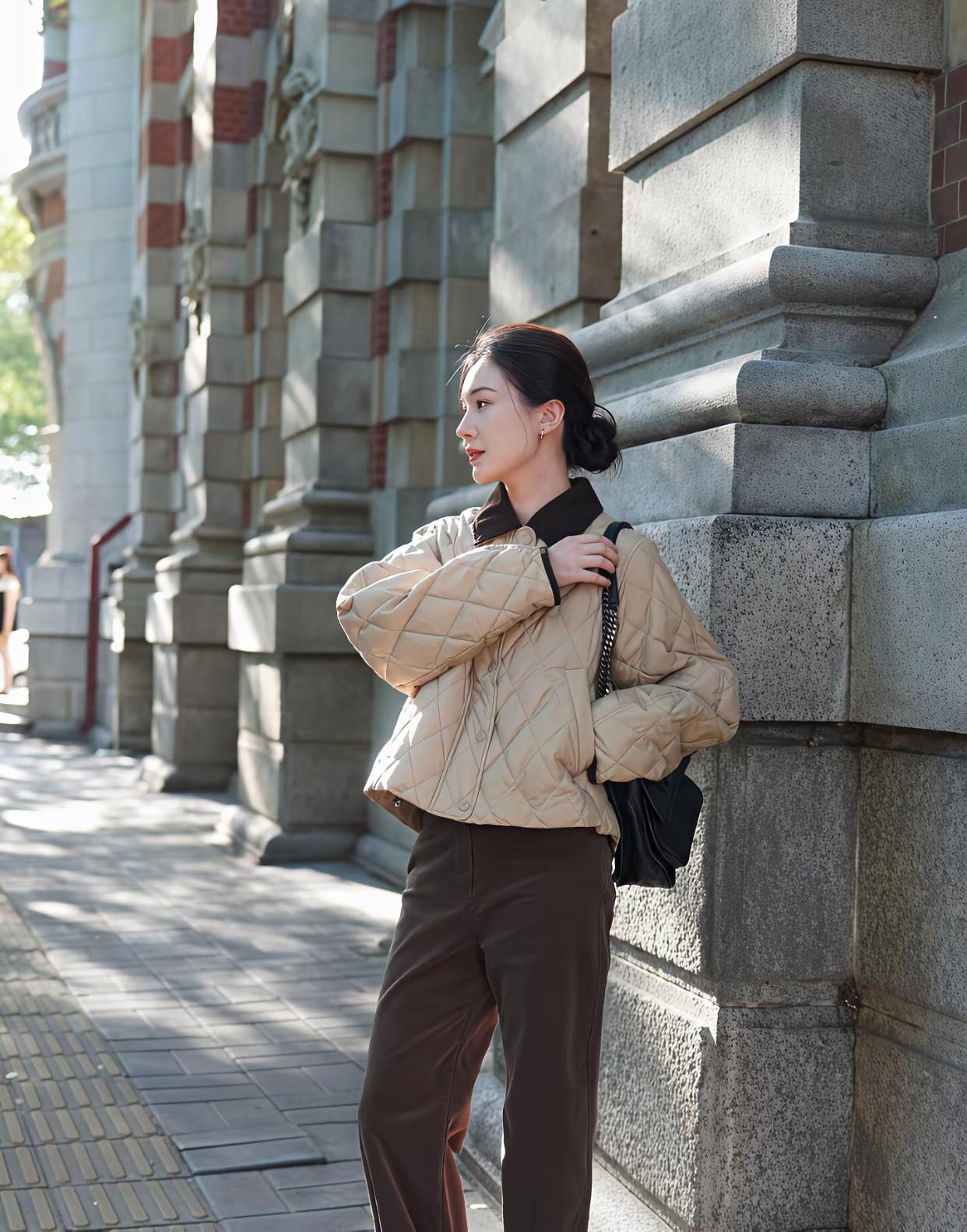 秋日穿搭指南:米色羽绒服+白色裤子,温暖又时尚!🍂👗👠