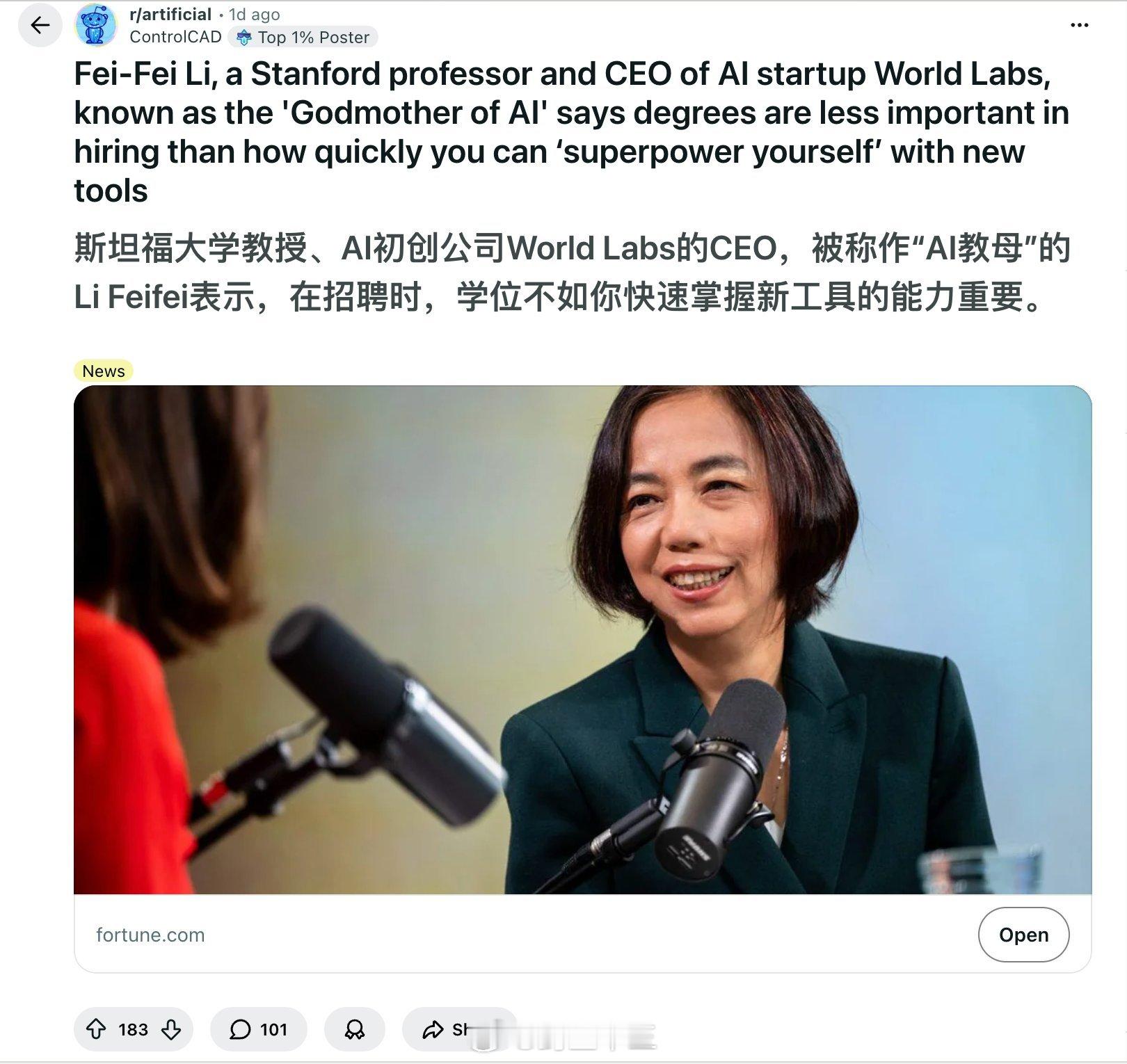 a股 斯坦福教授、AI教母李飞飞说:学历不重要,会用AI工具才重要。可她自己拿着普林斯顿博士、加州理工博士后,现在在斯坦福当教授。看到这个新闻,你第一反应是什么?评论区全在说:这些精英拿着顶级学历,现在告诉你学历不重要。真相是什么?你没有学历,简历连 HR 这一关都过不了。你根本没机会坐到她面前,向她展示你的 AI 技能。当那些精英说“能力比学历重要”,他们默认的前提是:你已经有一张门票了。而大多数人,连门在哪都不知道。所以别信那套鸡汤。他们说学历不重要。可他们自己,哪个没有?