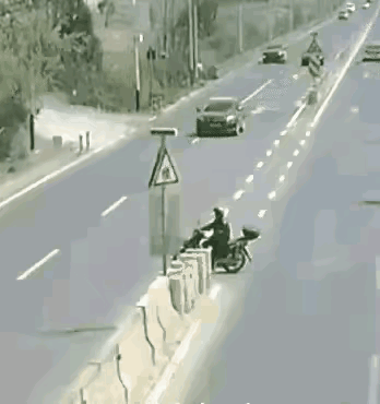 大爷骑着摩托车横穿马路,结果去你大爷的。 咱们常讲“宁等三分,不抢一秒”,瞧瞧大爷转弯穿过马路时的驾势: 其一,压根没有停下来的打算;其二,头都不带转一下,看看有没有车辆驶来。 这次教训真得深深铭记啊!任性横穿马路的后果,就是将自己置于危险之中。 交通事故