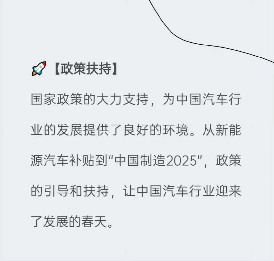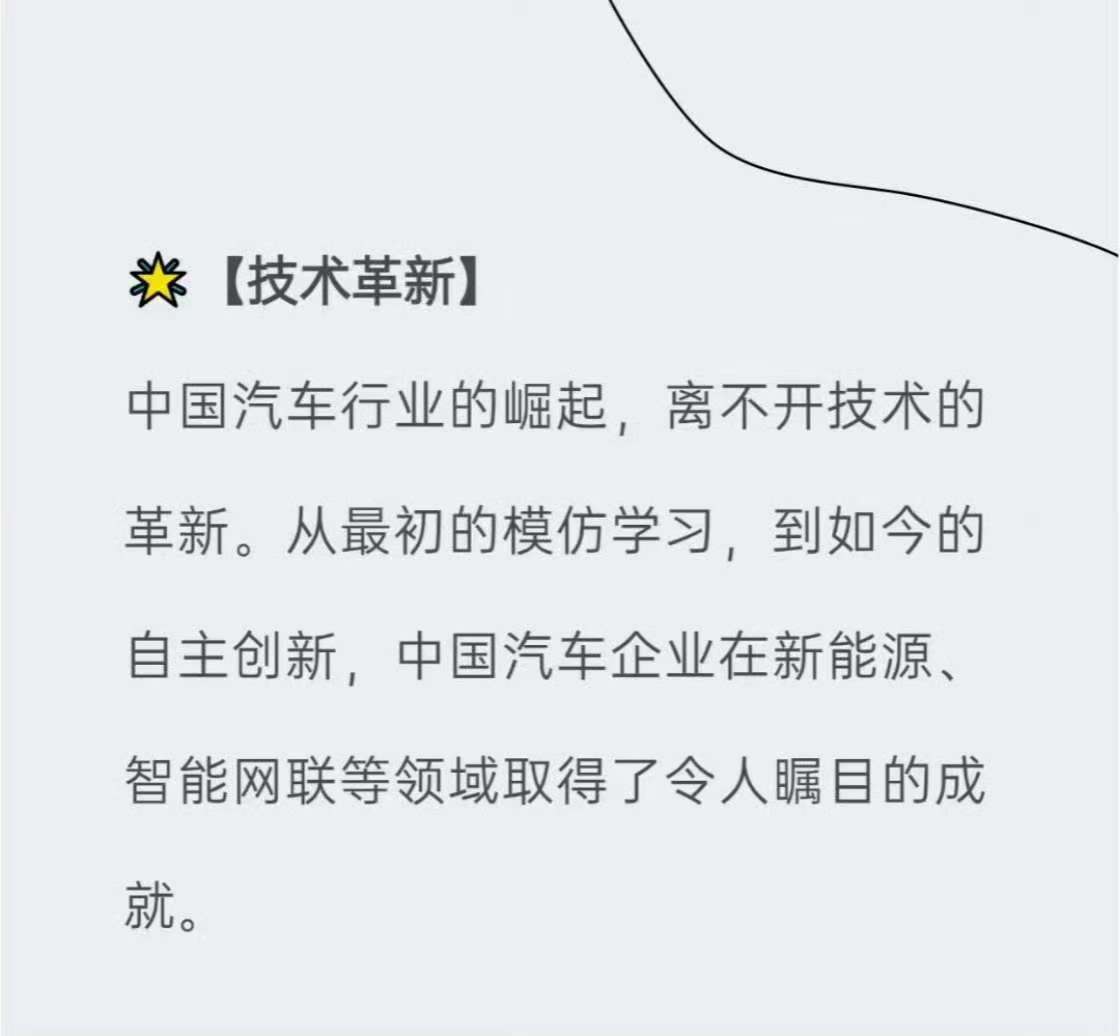 如何从汽车大国变身汽车强国曾经,我们在燃油车时代长期处于技术跟跑状态,而新能源与智能网联的产业变革,成了中国汽车的破局契机。政策端从补贴扶持到基建配套的全链条引导,为行业发展扫清了早期障碍;技术端则完成了从模仿到自主创新的跨越,动力电池、高阶智驾等核心技术实现可控,国产化率持续攀升。完整的产业链更是筑牢了发展根基,从锂矿开采到整车制造,中国形成了全球最完善的汽车产业生态,成本与效率优势凸显。与此同时,中国车企以全球化视野布局海外,建厂、合作、收购多管齐下,2024年汽车出口量登顶全球,彻底打破了海外品牌的市场垄断。如今的中国汽车,早已撕掉“低价低质”标签,以新能源、智能化为名片在全球舞台站稳脚跟,用实力书写了从汽车大国迈向汽车强国的时代答卷!