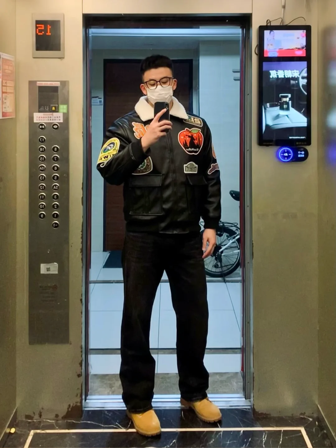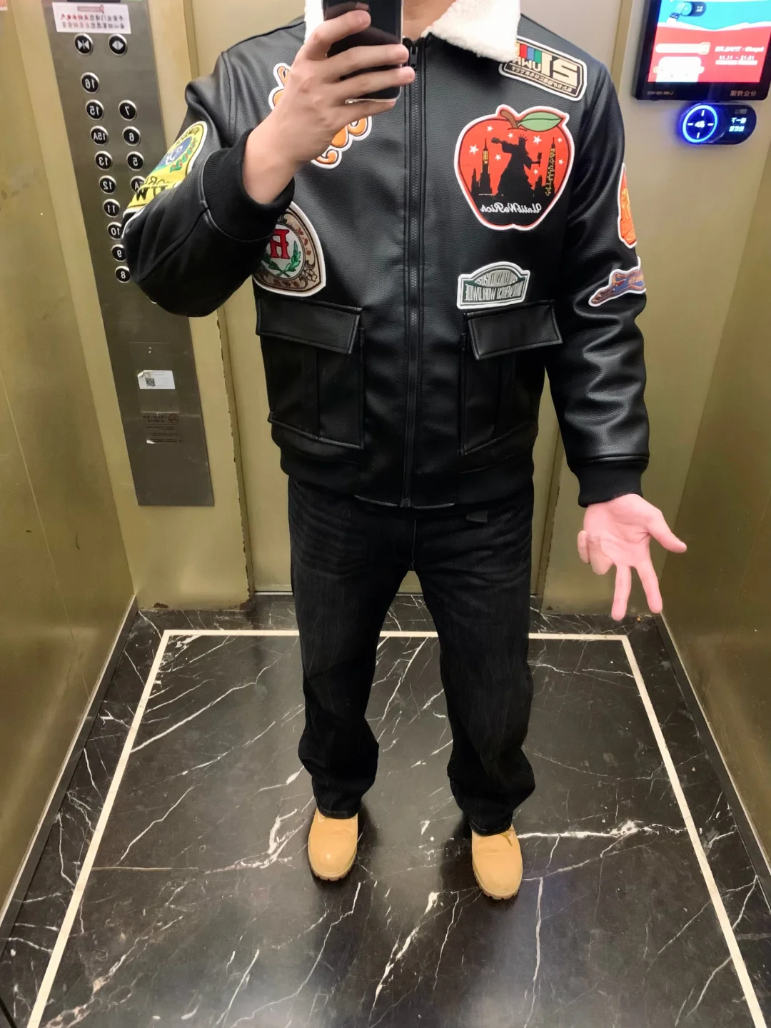 说到秋冬穿搭那必须是高壮男生的主战场[斜眼R] 短款皮夹克上身真的显肩宽显腿长,不得不说皮衣的质感是真高级搭配羊羔绒内里保暖性拉满[偷笑R] 这种上身只显裤型不显腿型的直筒牛仔裤对像我这种腿粗屁股大的男生太友好[萌萌哒R] 搭配大黄靴整一个就是美式复古硬汉既视感,建议所有高壮男生都可以尝试一下这种硬朗感穿搭[赞R]