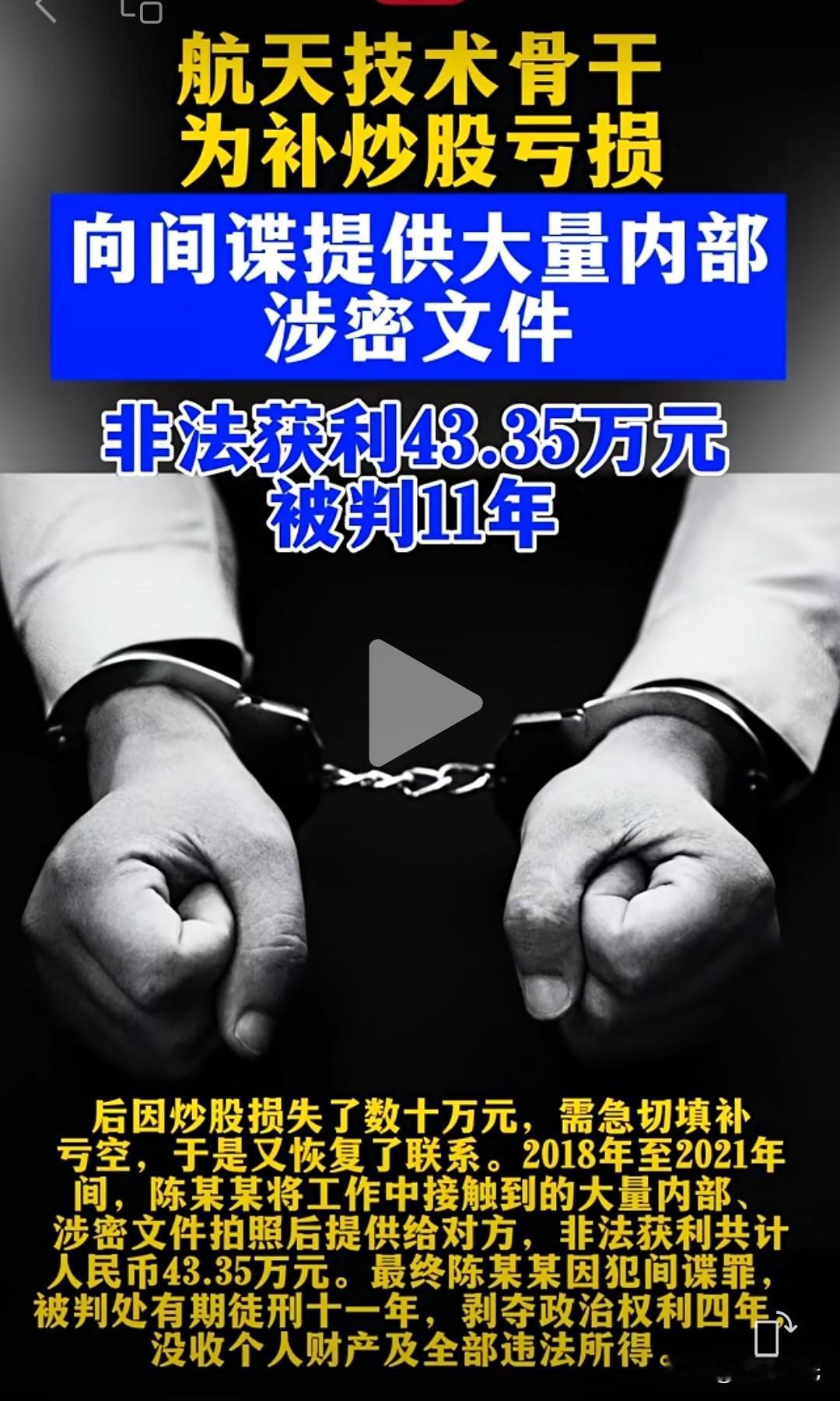 航天骨干向间谍提供大量涉密文件,被判11年… 外敌不可怕,“家贼”才恐怖!这个