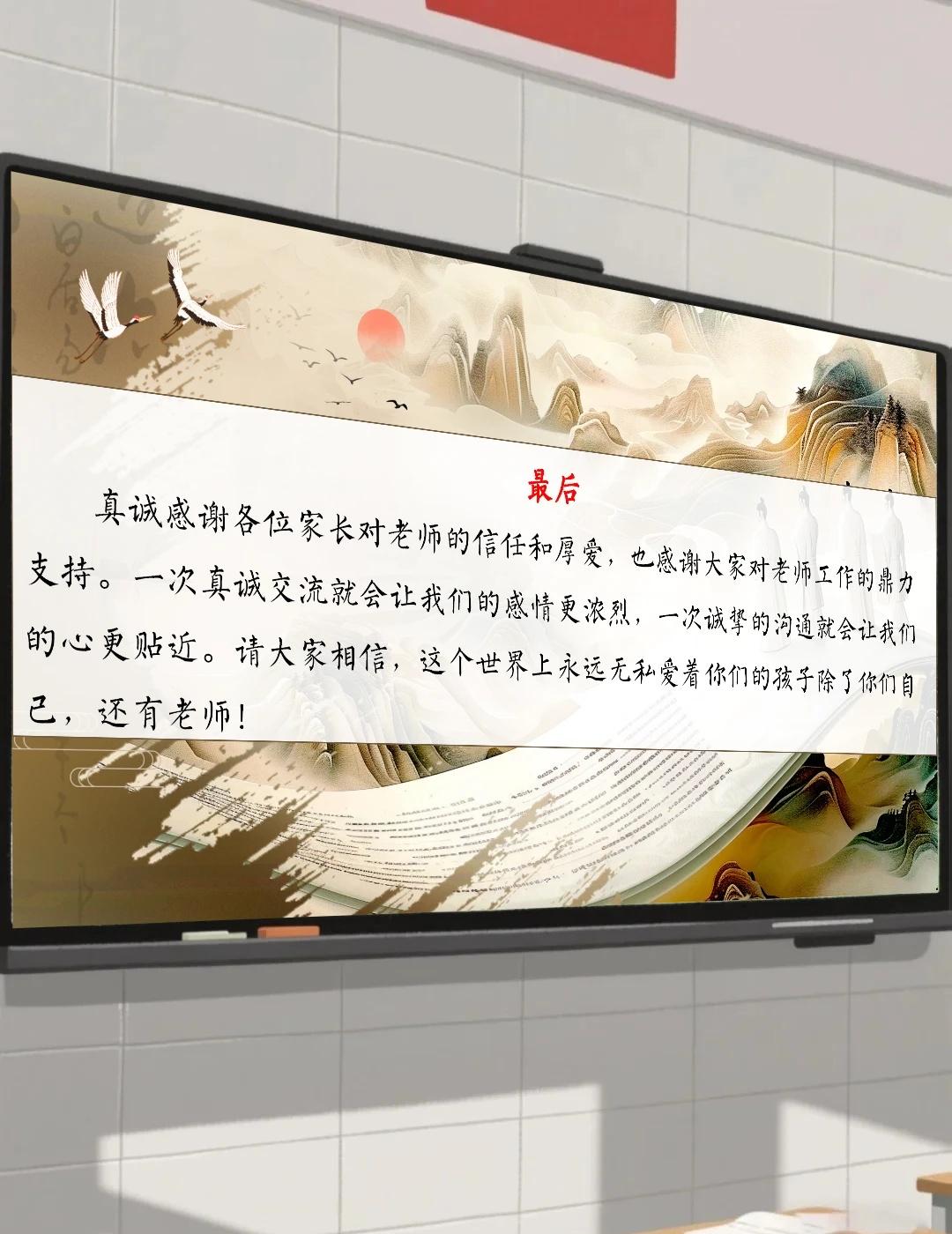 家长会轻松拿捏🤏🏻被校领导追着夸👍 六年级家长注意啦!小升初家长会别再手忙脚乱~ 这份 PPT 直接封神,从孩子性格培养到成长陪伴,再到家校高效配合,每一个点都说到心坎里!案例真实、方法可行,老师拿来就能用,家长看了就明白! PPT 内容介绍:聚焦六年级小升初关键阶段,以三大板块为核心,详解孩子性格塑造的重要性、身心健康的关注要点,以及家校协同提升成绩的实用策略。 PPT 目录: 1. 不畏浮云遮望眼 —— 性格为人本 2. 为有源头活水来 —— 关注成长路 3. 吾将上下而求索 —— 家校共奋进 六年級家长会 六年級期末家长会 期末家长会 家长会 六年級期末家长会ppt 家长会课件 家长会ppt 期末班会 动员大会PPT模版 班主任必备 简约ppt ppt设计 复习计划 目标设定 高效复习 期末动员会 诚信考试 诚信考试PPT