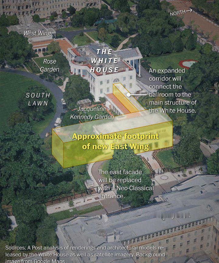 白宫豪华宴会厅,按计划2028年夏天完工,据说要花三亿美元。宴会厅占地九万平方英尺,建成后能容纳一千人,四面都装着防弹玻璃。以后办国宴,总算不用再搭临时帐篷了。 宴会厅费用是私人出的,没动美国国库一分钱。支持的人觉得,白宫早就该有这么个像样的升级了。 但为了建这个宴会厅麻烦事儿也不少。首先为了腾地方,白宫那个老东翼要被整个拆了。那栋楼历史可不短,1902年就建起来了。不少保护历史建筑的人跳出来批评,说这是在毁掉重要的文化遗产。 更棘手的是一场官司。美国国家历史保护信托基金已经把特朗普政府告上了法庭。他们指责这个项目绕过了必要的审查程序,既没拿到国会批准,也没认真评估对环境的影响。 国家公园管理局倒是轻描淡写地说,影响不大,旁边的历史景观基本都完好无损。可法院的听证会马上要开,说不定会下令暂停施工。 预算也一路往上蹿。最初说是两亿美元,后来涨到了三亿,足足多了一半。出钱的除了特朗普本人,还有一堆私人捐赠者,名单里苹果、微软这样的大公司都在列。 特朗普自己挺得意这个项目。他老说自己是个“建设者”,还讲从来没有总统真懂怎么建宴会厅。私下里,白宫的工作人员甚至管它叫“唐纳德·J·特朗普总统宴会厅”。 反对的声音当然很大。民主党人骂,经济这么不景气,花巨资盖宴会厅太不合时宜。一些前白宫官员也吐槽,设计风格搞得像豪华酒店,失了白宫应有的庄重。 眼下,老东翼已经拆完了,工地还在施工。但如果官司打输了,工程很可能就得停下来。原来想着2028年能弄好,现在看,拖到2029年也不奇怪。 到底能不能顺利建成,还得看法律程序怎么走。这个金光闪闪的宴会厅,早就不只是个建筑项目,它成了各种争论的又一个焦点。