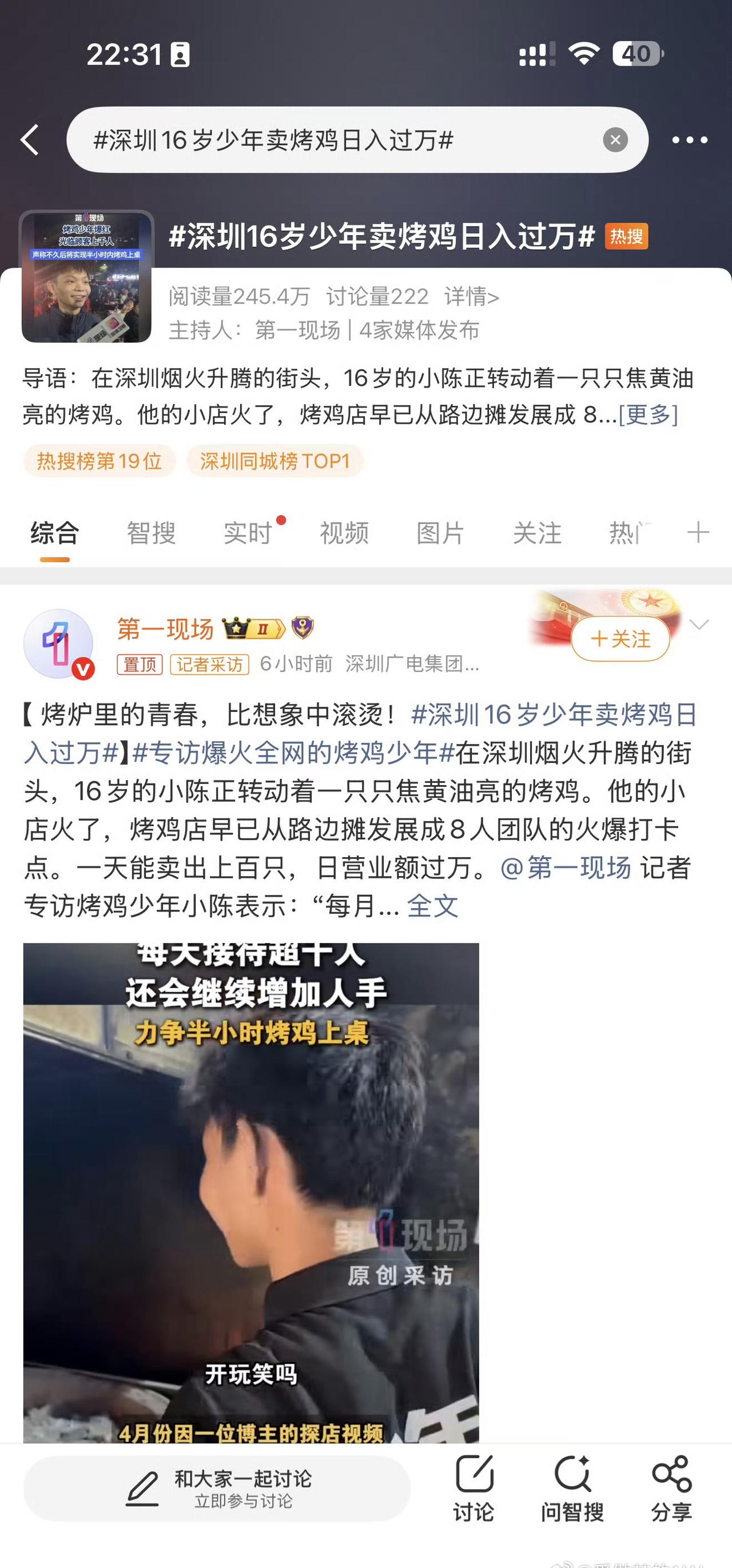 日入过万,一个月就是300万,一年就是3个亿。牛逼! 深圳16岁少年卖烤鸡日入过万