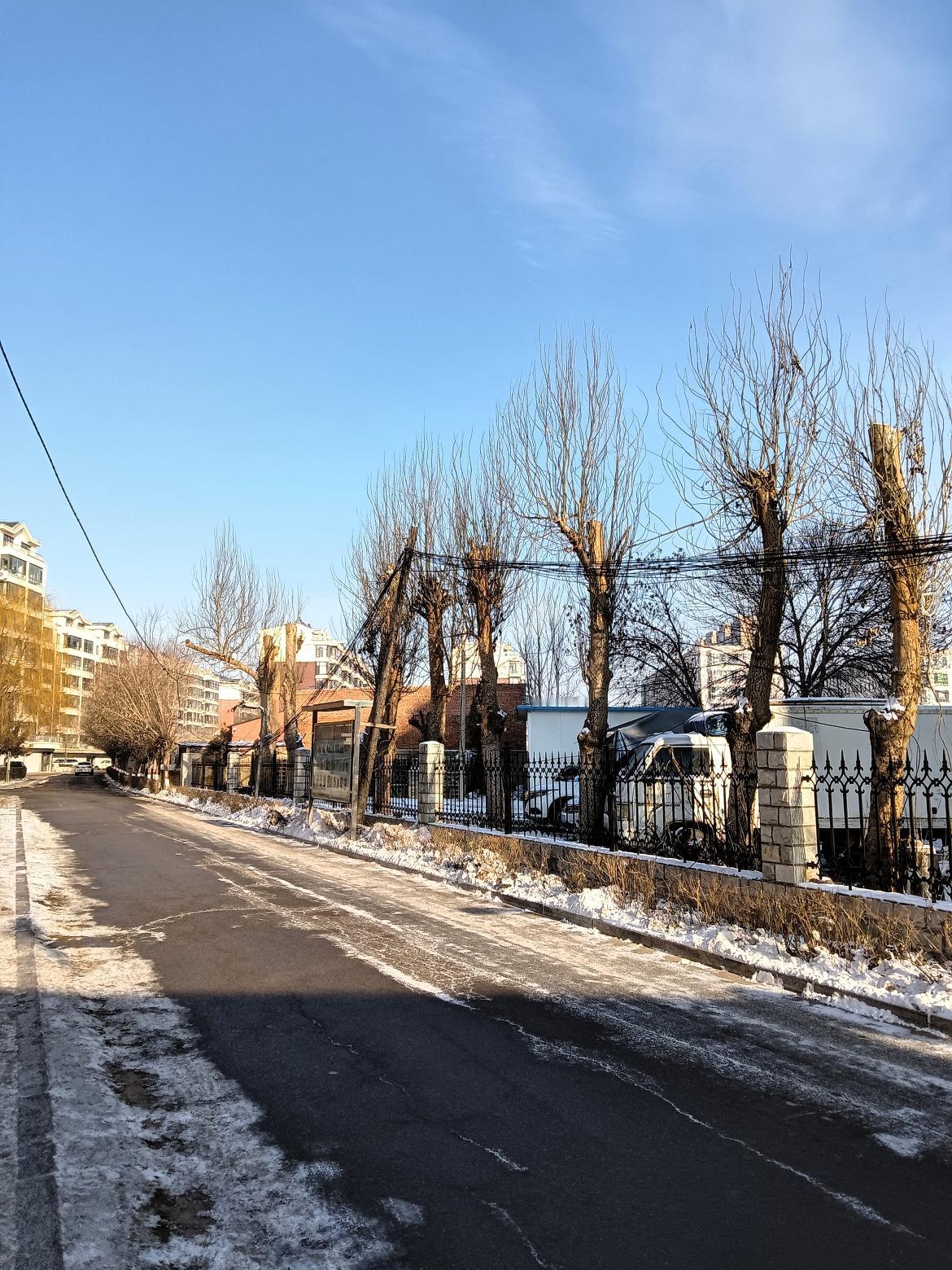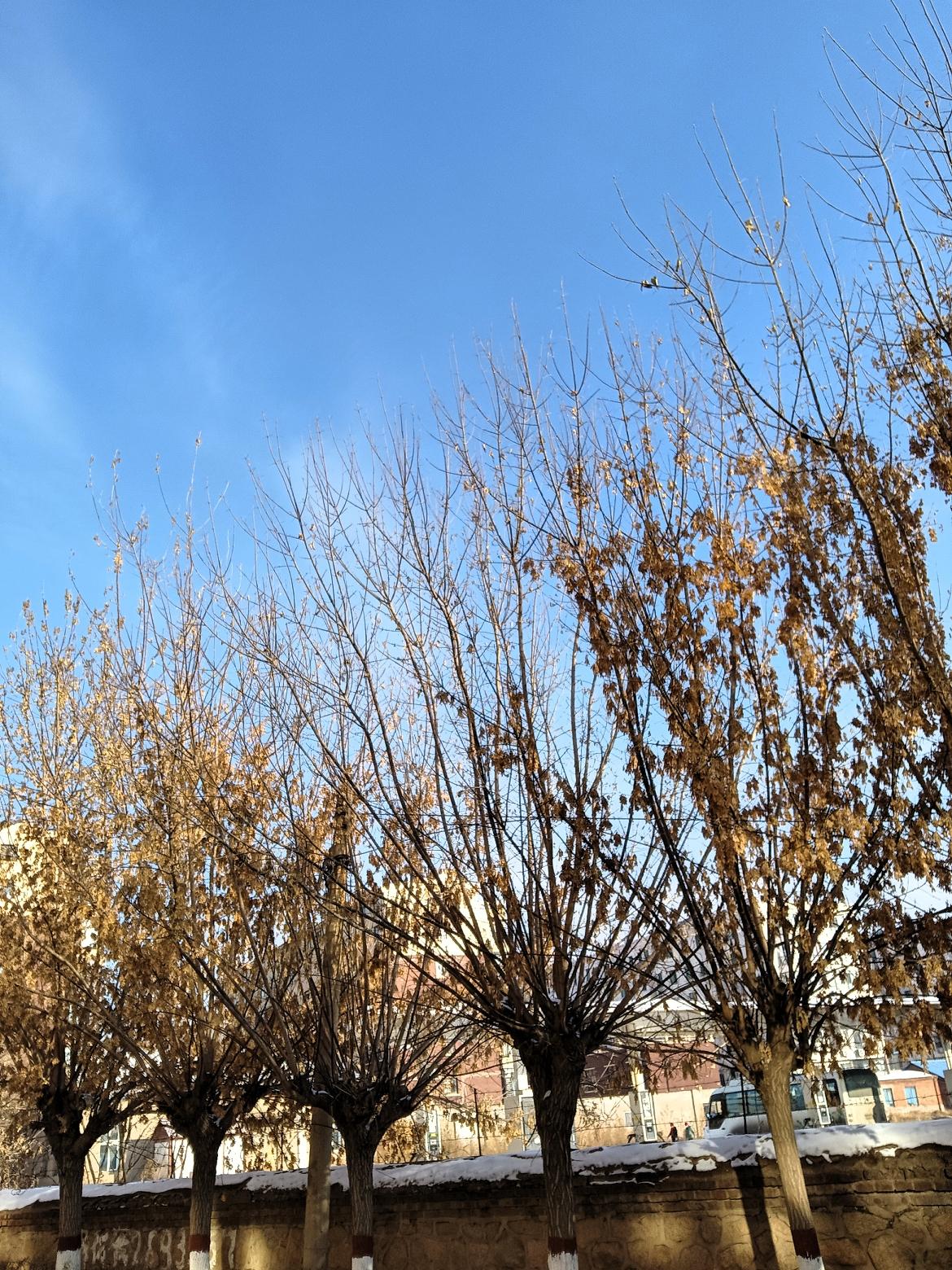 冬日暖阳下,骑车人穿行在落叶纷飞的街道上,感受岁月静好。