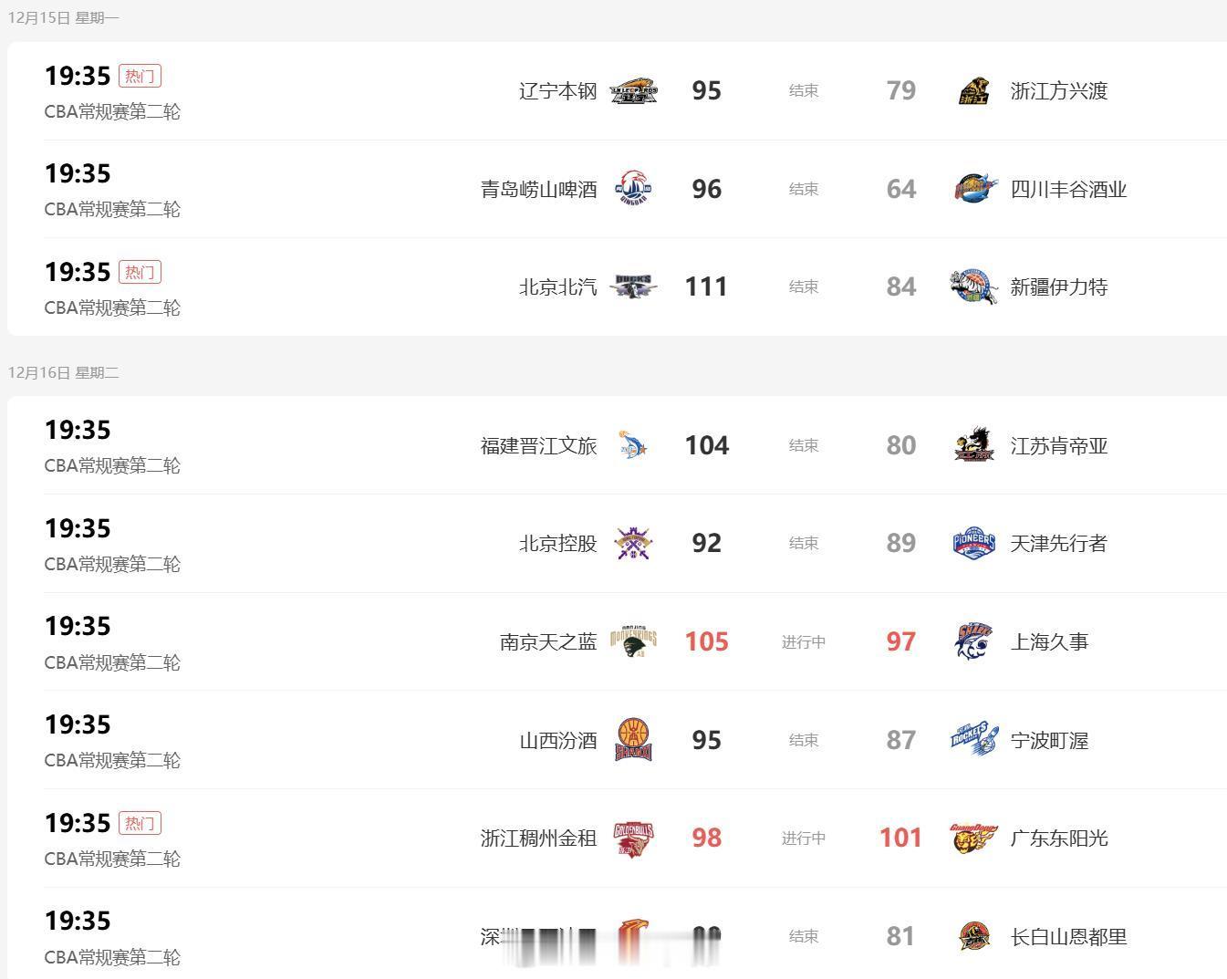 cba 常规赛第二轮打完,还有5队不败:青岛、辽宁、北京、广东、北控。40分钟下,本轮一下就有四队常规时间破百,单场最高分目前是111分。