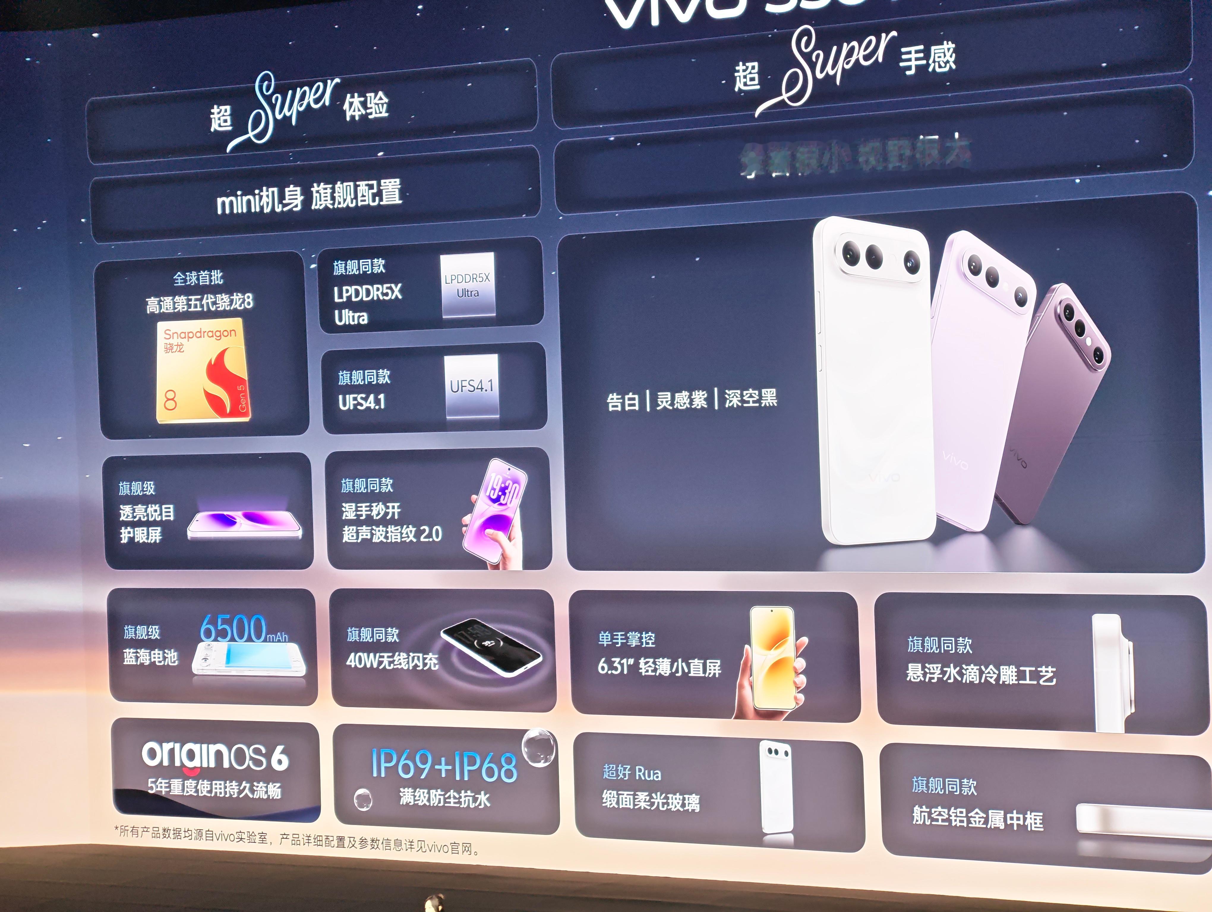 vivo S50这波真的太给力了!!全系标配了6500mAh大电池+90W有线充电,影像方面给到了800万像素超广角+IMX882潜望长焦,达到了旗舰的水准,还给到了3D超声波指纹+金属中框等等,这品质和配置旗舰那味有了!!vivo S50 Pro mini则拥有更小的6.3英寸尺寸手感,还带来了全面升级,首先拥有更强的第五代骁龙8处理器,配合LPDDR5X Ultra性能释放也是拉满了,更别说这次在影像像、屏幕、充电都升级了——LTPO屏幕、40W无线、全焦段闪光灯变焦!!你们更喜欢哪款?
