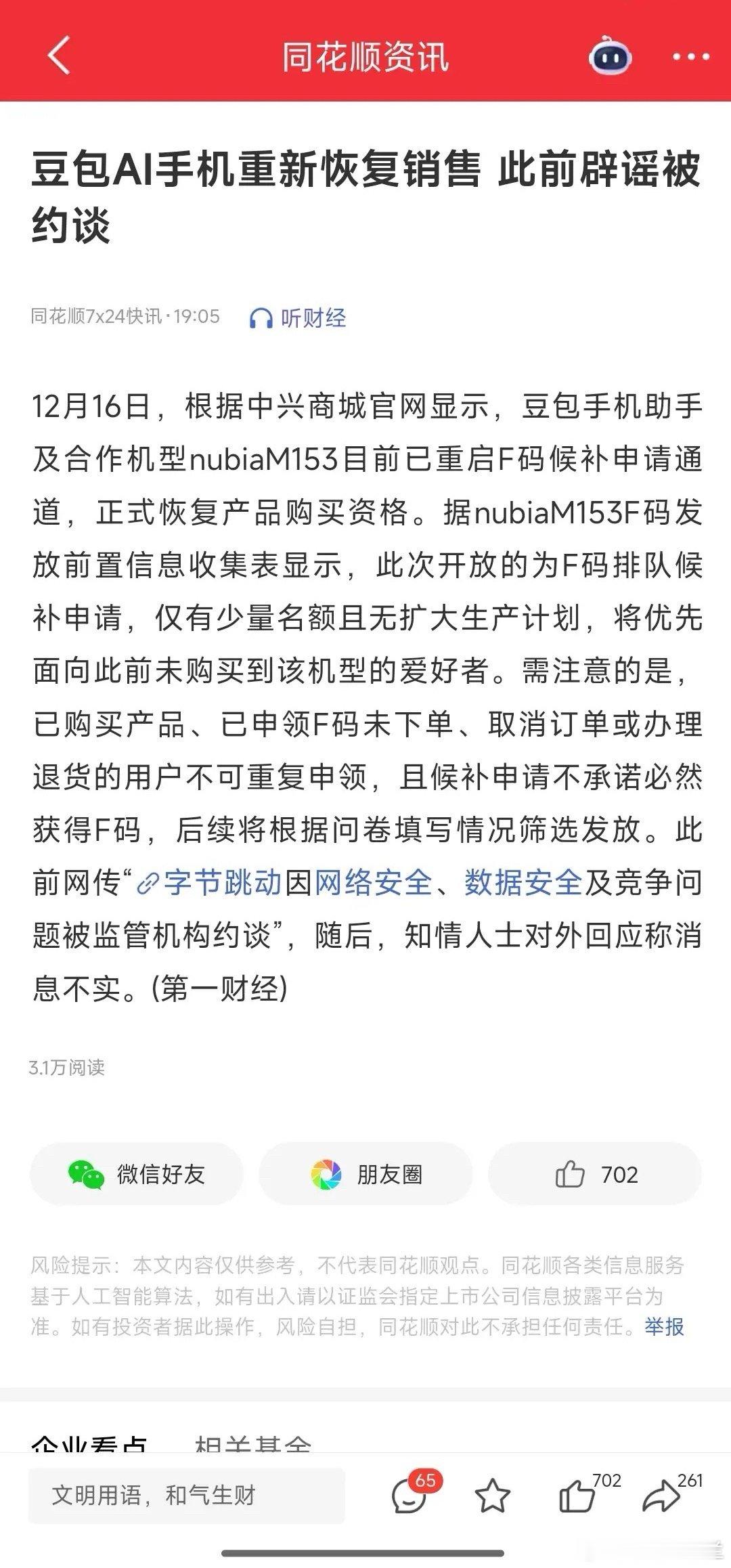 AI手机概念重磅利好,板块的机会在哪里?最新消息,豆包AI手机重新恢复销售。前些时日,字节发布豆包手机助手技术预览版就引爆了AI手机概念股天音控股,福融科技,道明光学,中兴通讯股价均涨停封板,可惜持续性不是很好这次恢复销售,无疑是个大的利好也不知道主力会拉哪个
