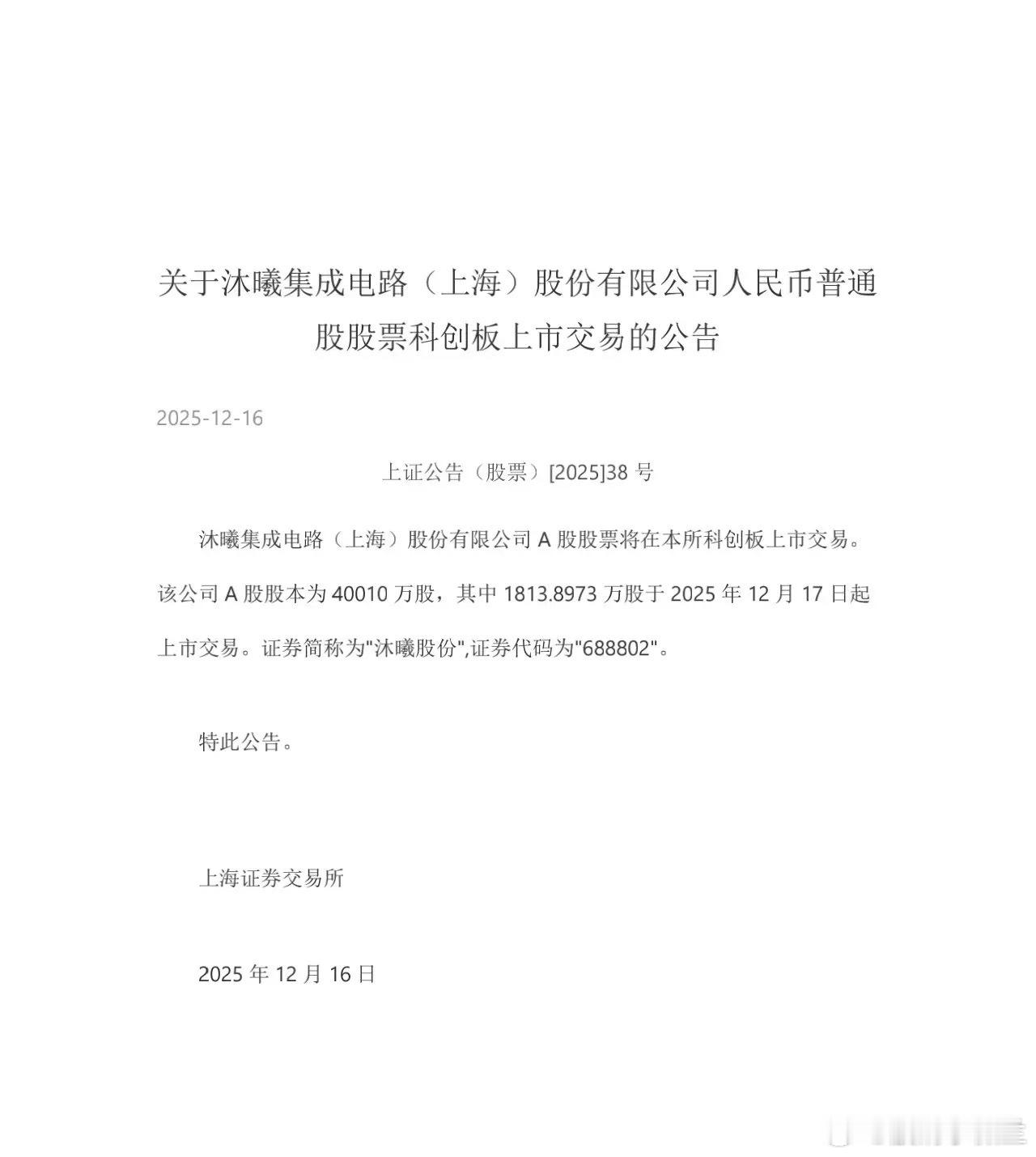 沐曦股份明天上市,中签收益能否超过摩尔线程的26万?能否再创A股新股中签收益新记录?沐曦股份将于12月17日在科创板上市,此次IPO发行量4010股,发行价104.66元,首日上市流通量仅1814万股。战略配售的802万股锁定期12个月,网下配售的1394万股锁定期6个月。此次流通的1814万股,包括网上发行中签的966万股和网下配售的848万股。摩尔线程发行估值540亿元,发行价114.28元,目前总市值3300多亿元,股价700多元。沐曦股份发行估值约420亿元,发行价104.66元。两家公司产品和经营业绩有较大的可比性,沐曦股份的经营业绩略好于摩尔线程。摩尔线程上市首日650元开盘,中签的投资者收益超过26万元,创造了A股新股中签收益记录,沐曦股份明天能否超越摩尔线程?拭目以待!