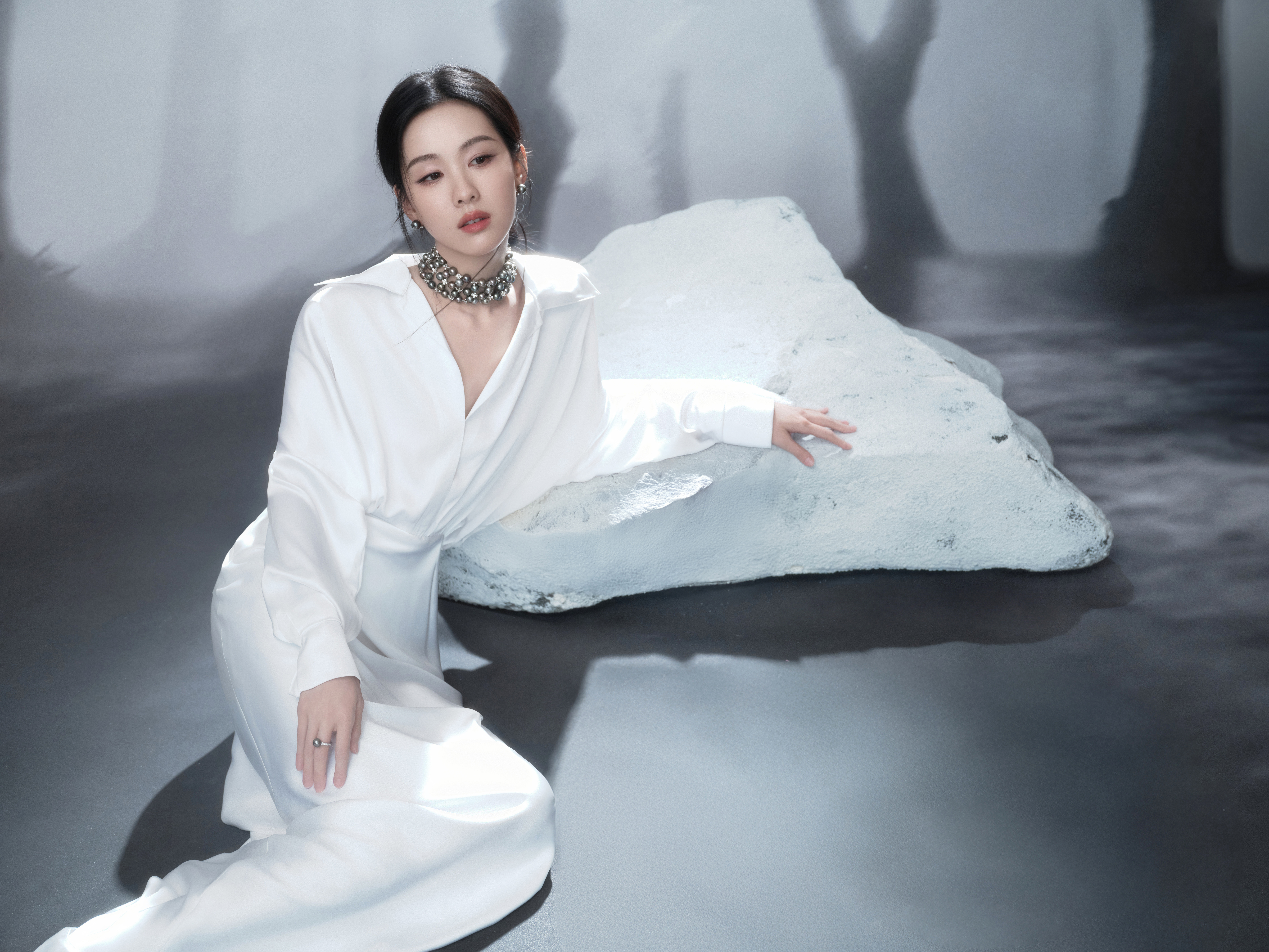 陈都灵缎面衬衫长裙 陈都灵国剧盛典造型出图,缎面长裙优雅贵气,完全就是女神级别的陈都灵白色系look陈都灵白色睡美人