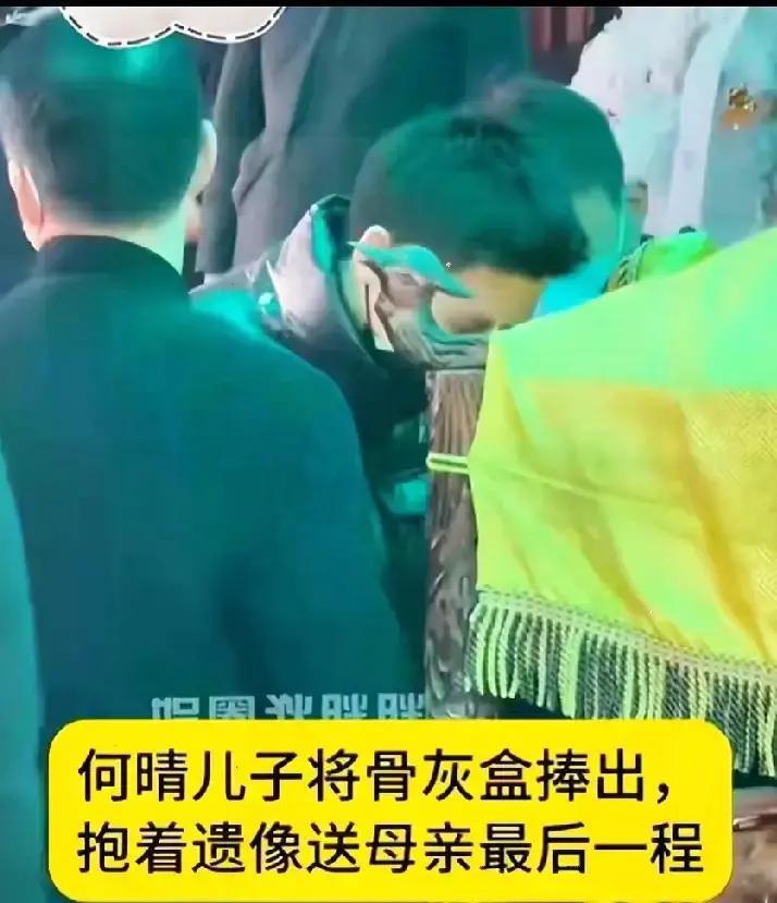 那个捧着骨灰盒的年轻人,是何晴的儿子。 这一幕看得人心里发紧。演员何晴去年走了,才六十一岁。她可是唯一演全了四大名著的女演员,小乔、李师师、秦可卿……个个都是经典。这是真本事,不是靠炒作能换来的。 她走得突然,说是长期跟病痛抗争。人到中年,健康才是最大的本钱。看她晚年的一些影像,确实清瘦了不少。 网上有人扯她家庭关系,其实没多大意思。前夫许亚军早已再婚,各自安好。儿子许何也成年了,踏踏实实做幕后工作,母亲生病时一直在身边照料。这就够了,家家有本难念的经,外人少说两句。 她走后,网友自发回顾她的角色,播放量好几千万。观众心里有杆秤,谁是用心演戏的,大家门儿清。如今荧幕上,还能找到几个这样气韵的演员? 老艺术家一个个离去,总让人心里空落落的。我们是不是该在他们还在的时候,多给些关注和尊重?别总等到告别时,才想起他们的好。