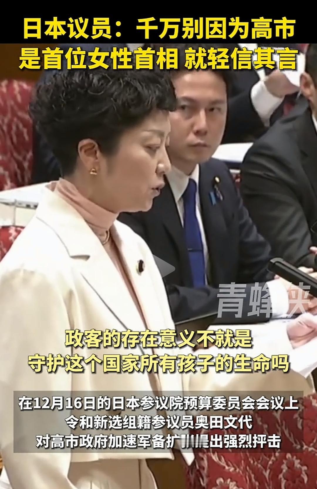 日本议员反战,高市大妈会听她的话吗?只会当耳旁风而已。而且她说的这个话也挺搞笑,女人的话什么时候可靠了? 政客的话什么时候可靠了你自己是什么人还不清楚吗? 现在看起来日本国会在野党都对高市大妈不满意,但是你们的批评有用吗? 要团结起来才行。团结起来才能把高市赶下台。 点右上角关注我,我们一起去看这个魔幻的世界