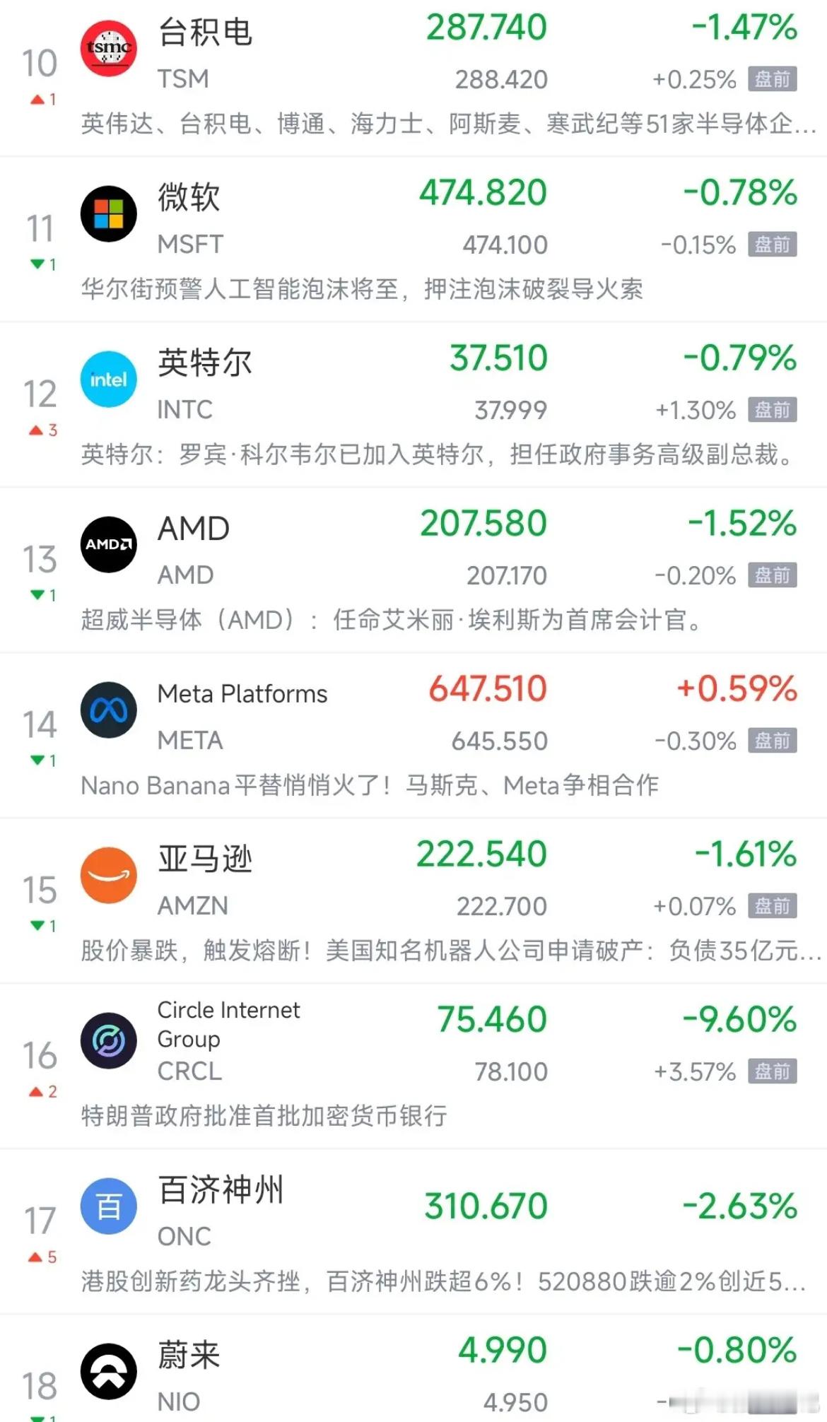 美股科技股跌了两天总算稳住了!盘前纳指期货从跌1%拉回平盘,英伟达、谷歌这些龙头都在反弹。这几天A股科技股跟着美股跌,核心就是担心AI炒作有泡沫。全球AI行情都看美股脸色,今晚要是美股能稳住反弹,明天A股科技股大概率能跟着回血。跌了这么久,也该来波反弹了,就等今晚美股的表现了。