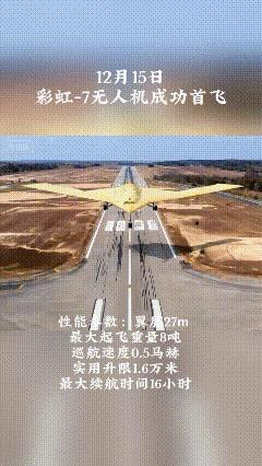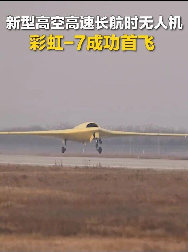 12月17日,12月15日,央视新闻报道,我国又一款隐身无人机在西北大漠完成首飞,彩虹一7无人机正式首飞成功,标志着中国🇨🇳又一款战略无人机面世,我国军工企业又一款能拿出手的大杀器,震撼的展现世人面前。 据外媒体报道,彩虹一7无人机又称无人版轰一20来了,隐身技术性能超过美国B一20隐身远程战略轰炸机,完全可以实现横跨太平洋实施打击,是B一20隐身远程战略轰炸机克星。 评论,从新闻报道来看,彩虹一7无人机确实不一般,具有高空、高速、长航程、隐身技术、滞空时间长、察打一体化、载弹量大的特点。比喻无人版轰一20来了,一点不过。[赞][赞][赞][赞][赞][赞]