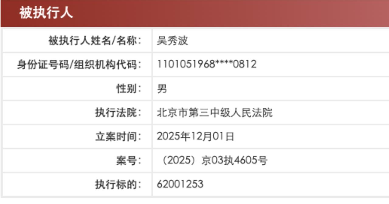 吴秀波又摊上事了:被执行6200万!名下公司注销大半,昔日“雅痞大叔”彻底翻车? 娱乐圈的瓜真是没有最老,只有更狠! 谁能想到,消失在大众视线很久的吴秀波,最近又因为一条“执行信息”冲上了热搜。 就在这两天,中国执行信息公开网显示:吴秀波新增一则被执行人信息,执行标的竟然高达6200万余元! 吴秀波被执行6200万 这个数字对于普通人来说是天文数字,但对他来说,更像是“雪上加霜”的又一记重锤。 这次是北京市第三中级人民法院强制执行,白纸黑字躲不掉。 查了一下他的商业关联,名下12家公司,竟然倒闭、注销了一大半,现在只剩5家还在勉强维持。 曾经那个风度翩翩的“雅痞大叔”,现在留在互联网上的关键词,除了“陈昱霖事件”,就是数不清的官司和执行款。 作为当年的顶级流量,从巅峰跌入泥潭,这代价不可谓不惨重。这也给所有人敲了个警钟:德不配位,必有余殃;法律的红线,谁碰谁都要买单! 做人做事,还是得守住底线,否则苦心经营一辈子的江山,崩塌可能就在一瞬间。 从“顶级男神”到如今的“被执行人”,你觉得他还有翻身的可能吗?评论区聊聊。