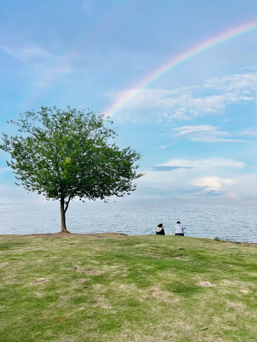 🌊我觉得,这里应该是武汉最像海的地方了 🍃大片的绿草地很适合野餐露营,湖边的这颗大树也很美,又是一颗孤独的树🌳 🏊♀️这里的水很清,水边都是小石子,所以很适合小朋友们玩水,坡度也很缓,所以很安全。去年夏天的时候还看到有人在这边游泳。公园里面还有儿童游乐的设施,所以这里遛狗遛娃都挺合适的 📍地点:悦湖公园(金融街·金悦府售楼部对面) 🅿️停车:路边都可以停