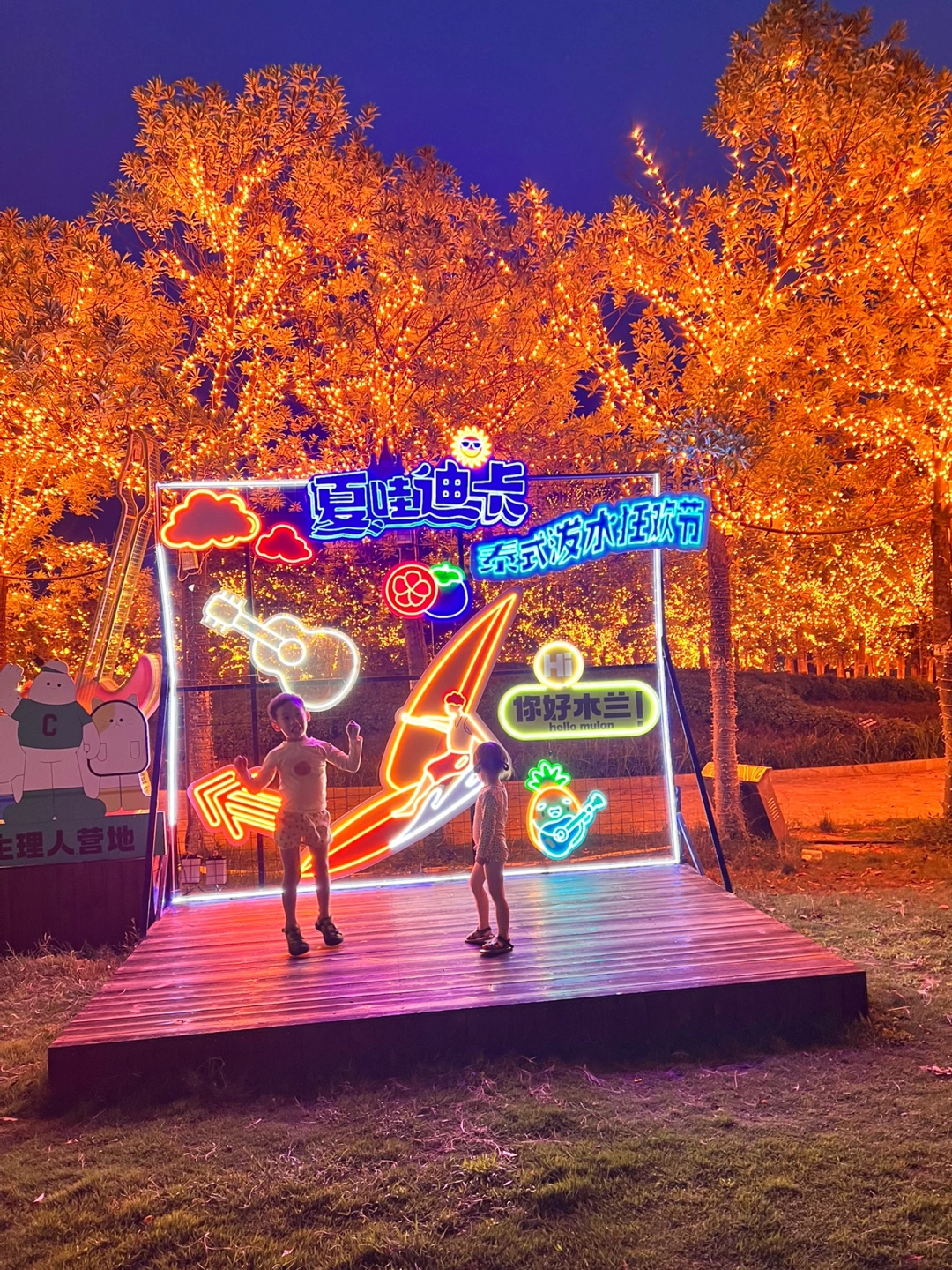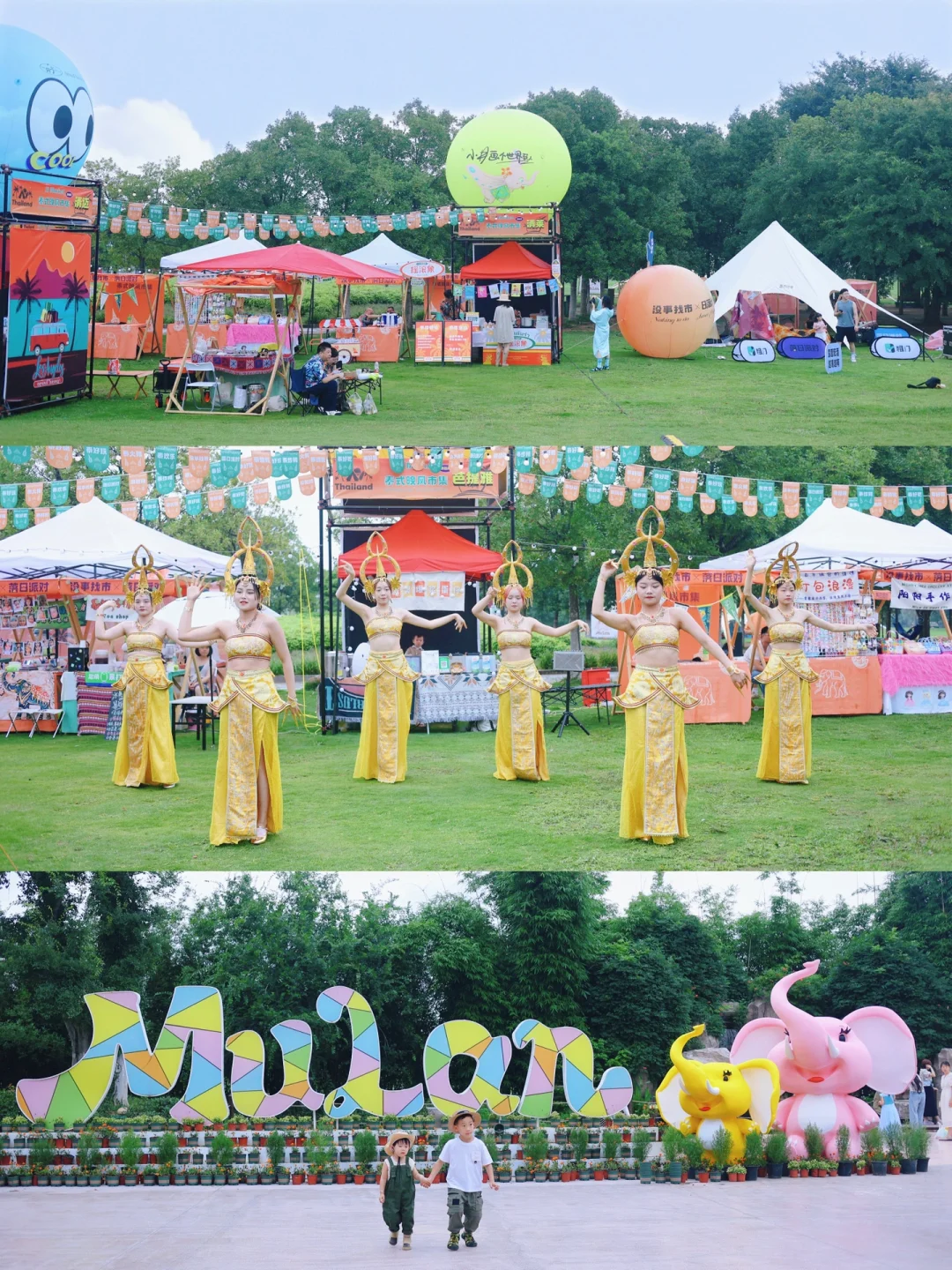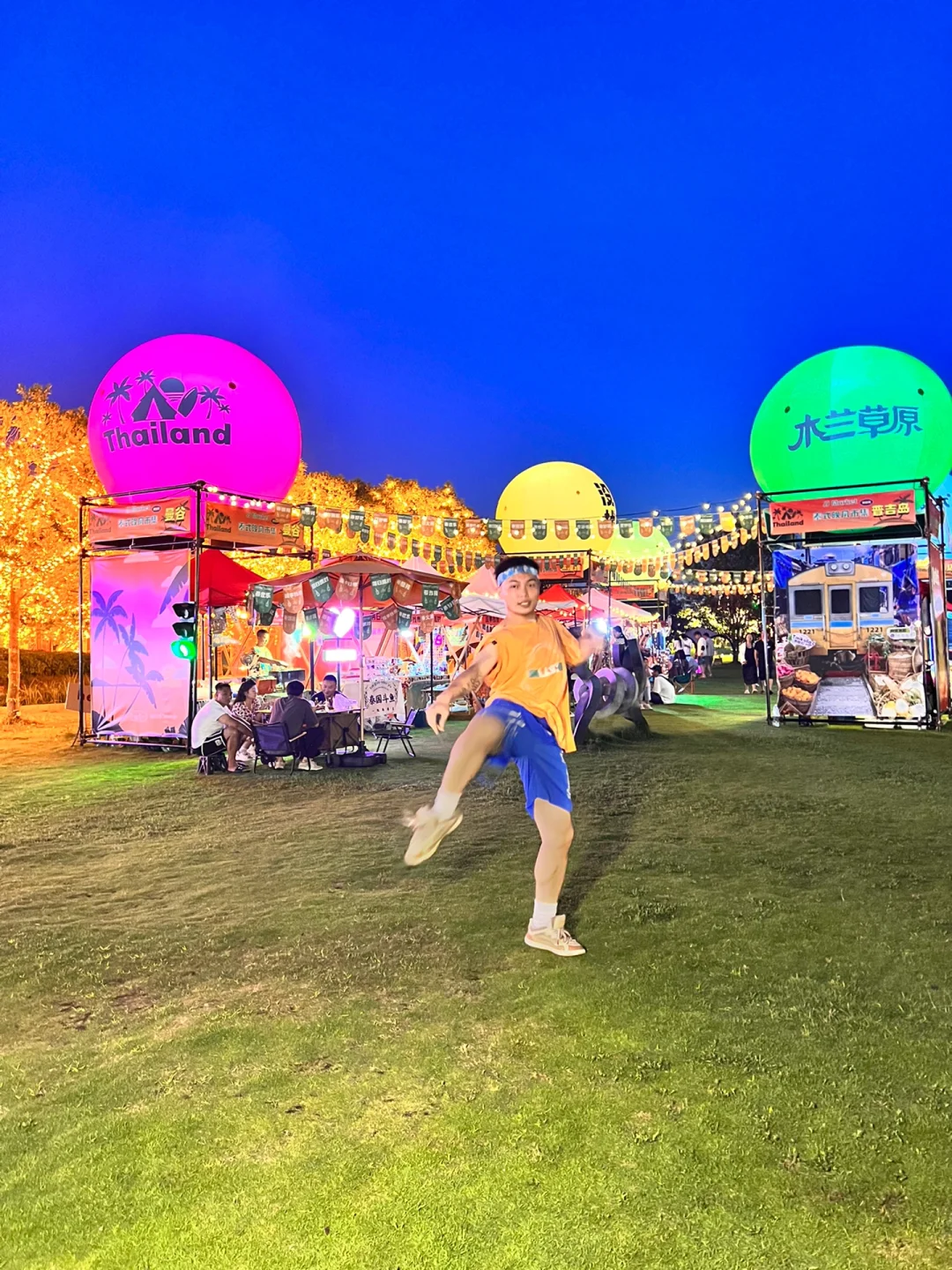 天热的话可以跟我们这次一样,下午过去,四五点的是没那么热了就去逛泰式晚风集市,布置得很像清迈的集市,一秒穿越到了泰国。集市的吃的喝的价格都很便宜,肉串十元,冰饮料十二块左右,还可以用券,我们领了四十的券,相当于免费吃喝了,好划算!芒果糯米饭、冬阴功汤、泰式奶茶☕️应有尽有,想想还流口水💦