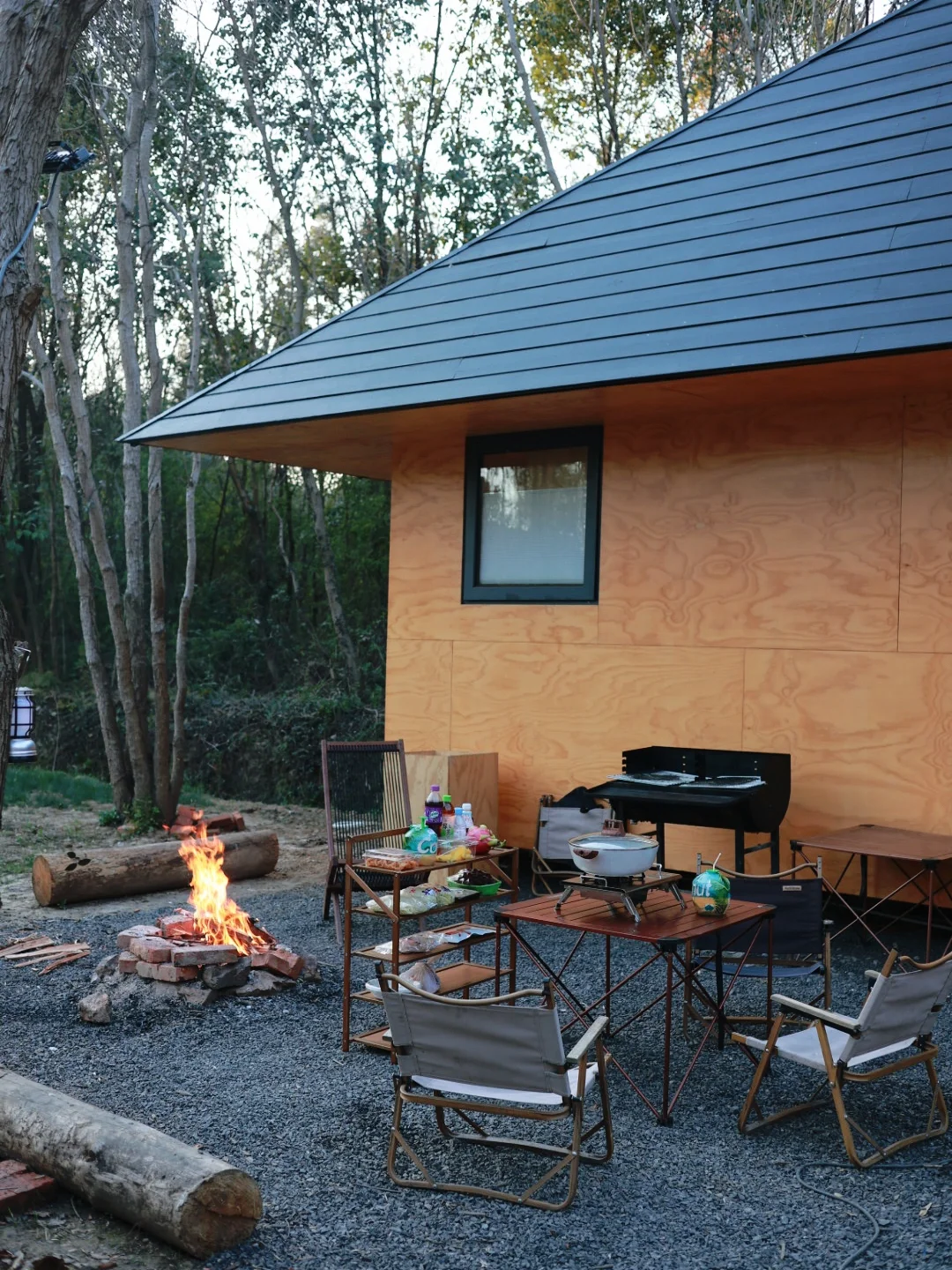 🏠这里的房子都是一栋栋独立的,每栋间隔得也很远,所以私密性很好,度假感满满🏖每个房子前面都有一个大天幕,白天就在天幕下面坐着吃吃水果看看书,晚上把篝火点上,烤烤火、还可以在星空下烧烤涮火锅🍲独享这片秘境森林