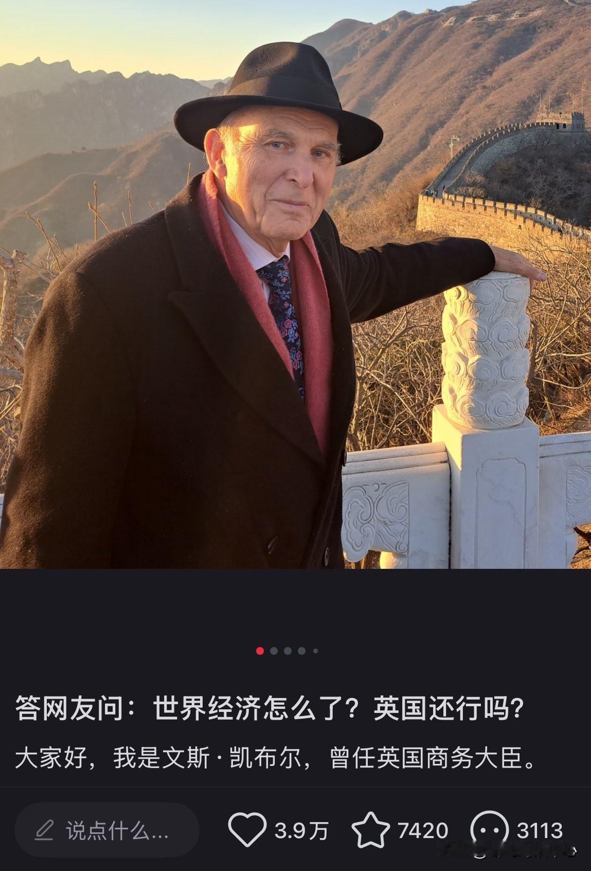有趣的是,许多前西方政客都在小红书上与中国人民互动,比如曾任英国商业、创新和技能大臣的约翰-文斯-凯布尔(John Vince Cable)。 在回答中国人民关于英国经济是否衰落的提问时,凯布尔表示,英国经济仍有潜力,其生产增长率仍高于法国和其他欧洲国家,全球南方国家将继续增长。 凯布尔是少数几个在任时能客观务实地看待中国的西方政治家之一,但耐人寻味的是,许多西方政治家在任时批评中国,卸任后又开始称赞中国的进步。 事实证明,他们始终了解中国的真相;他们只是想让自己的人民蒙在鼓里,通过诋毁中国来博取民望🧐。