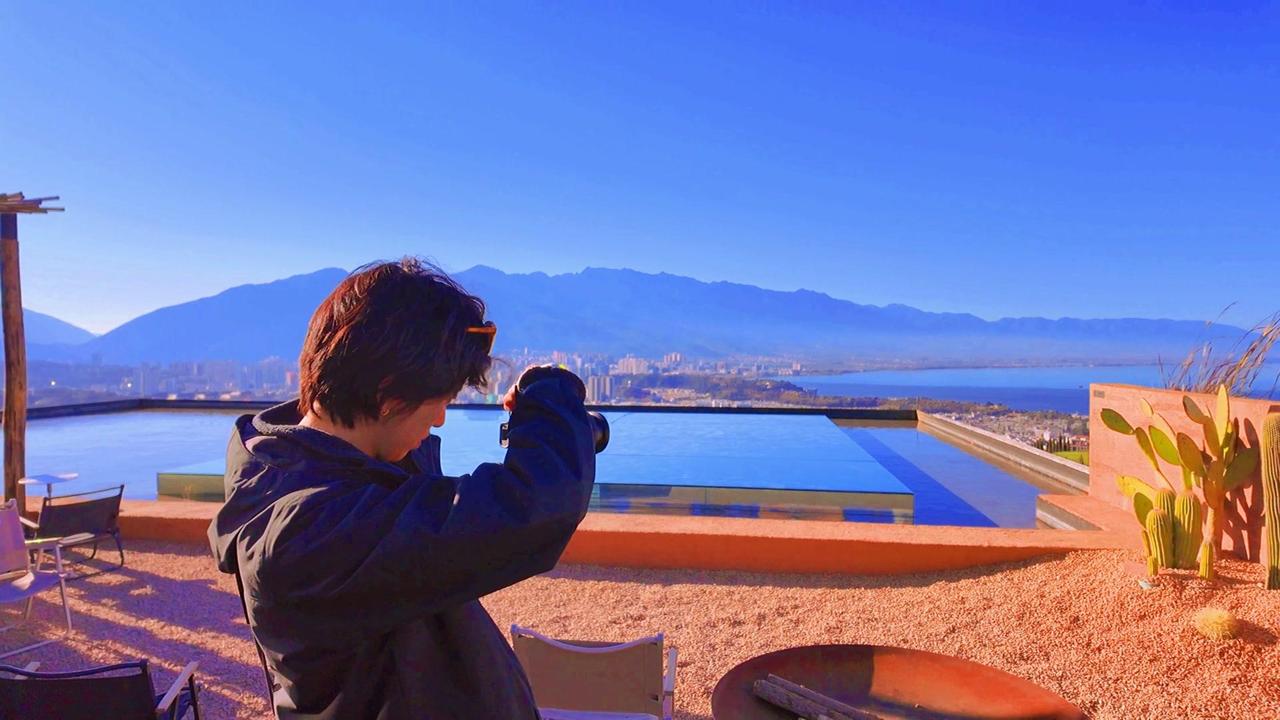 大理云想山,蓝得太治愈!🌿站在山顶往下望,天空像被洗过一样干净,蓝得让人心动。远处的洱海像一条蓝色的丝带,和天空连在一起,分不清哪里是天,哪里是海。