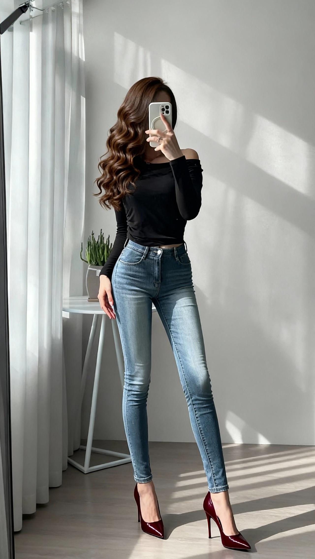 适合中年女性穿的牛仔裤有哪些深色牛仔裤搭配高跟鞋,别有一番魅力