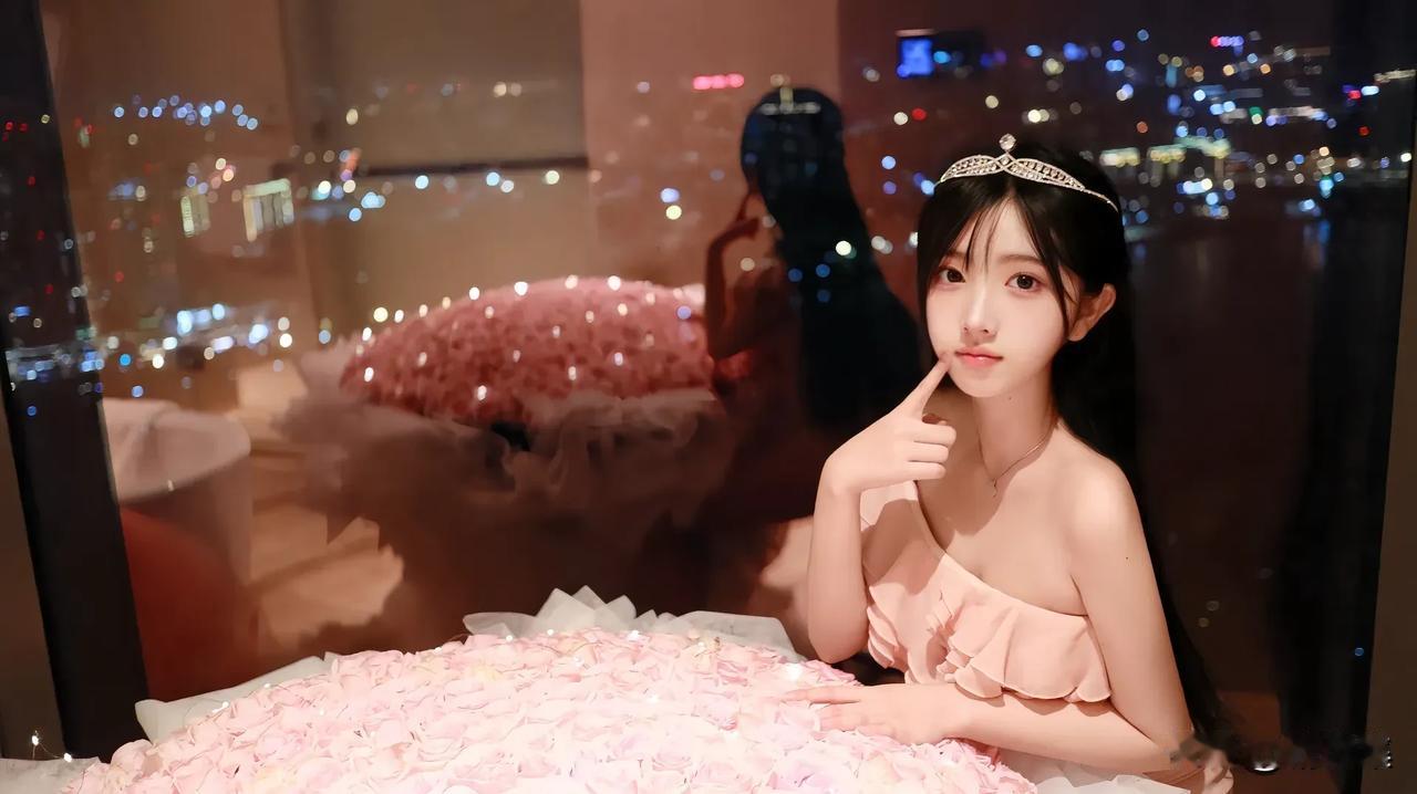 窗边少女,黑发红唇,甜美可人,温柔似水。