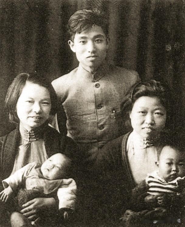 1938年,朱枫(左)怀抱儿子朱明在湘西逃难途中与朱晓光(中)、陈宜(右)母子的珍贵瞬间。朱晓光是朱枫的第二任丈夫,比朱枫小11岁。1937年“七七事变”后,朱枫在镇海抗日宣传队队长朱晓光的动员下,加入了抗日救亡队。两人在同甘共苦的斗争中成为革命伴侣,1938年一同加入武汉的新知书店工作。