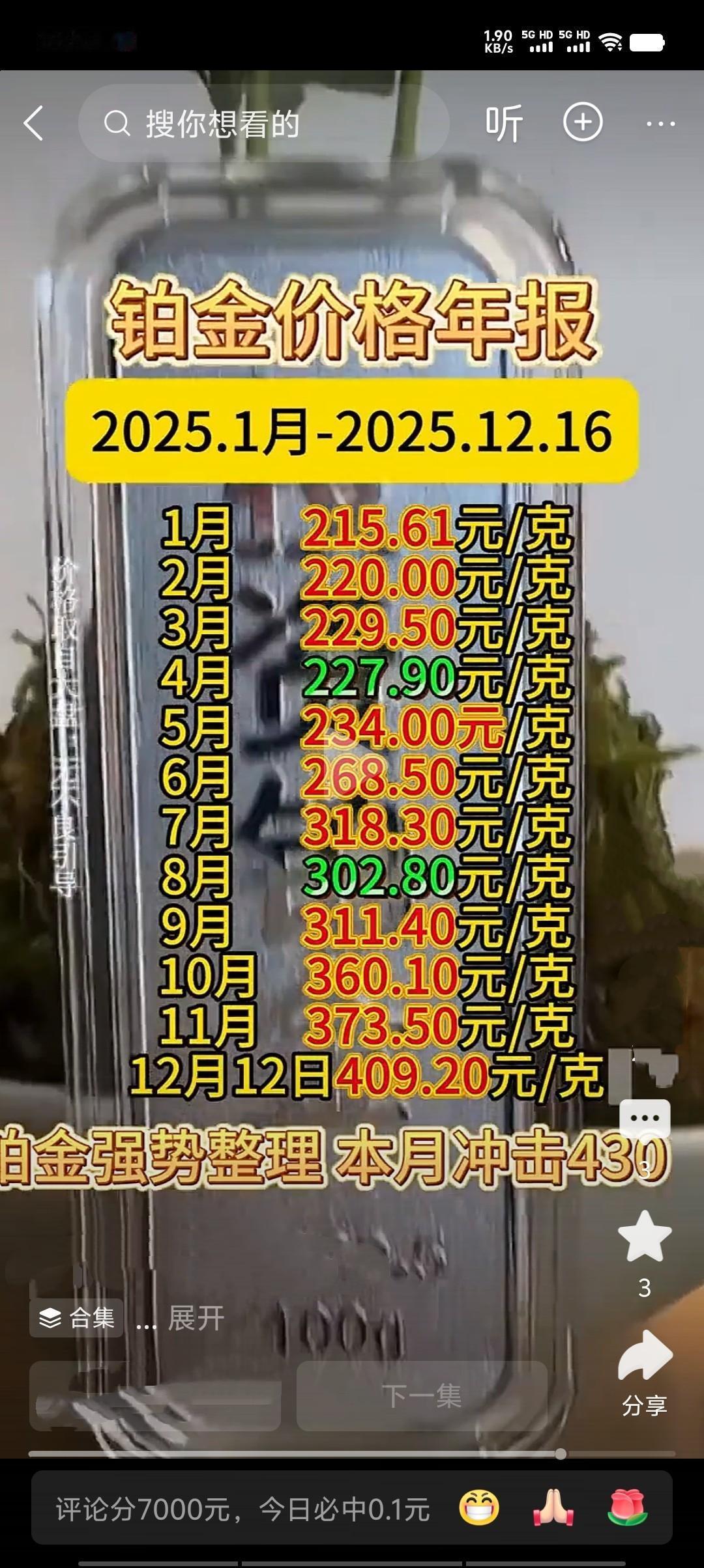 2025年贵金属市场持续火热,继金银大幅上涨后,铂金属接棒狂飙。12月15日,国内期货市场铂主力合约涨停,年内累计涨幅近99%。其上涨受供应短缺、绿色能源需求增长及投资避险情绪推动,市场看涨情绪高涨。铂金价格