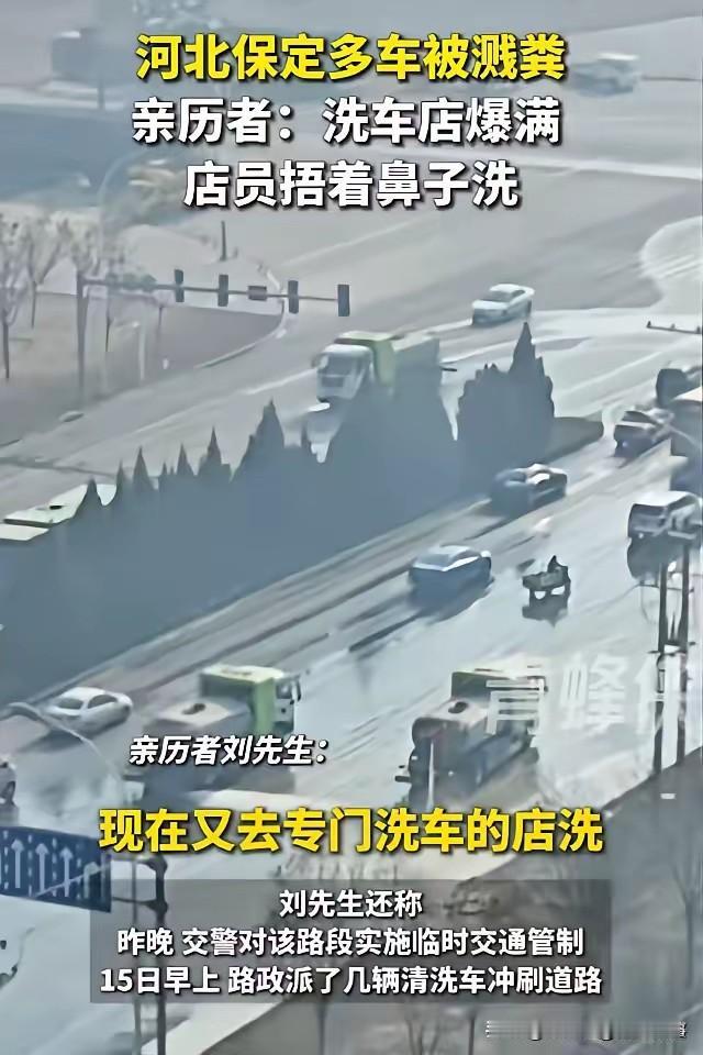 12月14日晚河北保定东三环发生的吸污车泄漏污物事件。当晚不少车主途经该路段时,车辆都被溅满了黑黄色的粪水污物,不少人还误把路面污物当成积雪或砂土,靠近后才发现是散发恶臭的污物,有车主甚至被溅得挡风玻璃完全看不清,车机还发出空气异常报警。 受此事影响,当地自助洗车店当晚就排起长队,有亲历者洗了三次车,车身缝隙里仍有残留污渍,洗车工也得捂着鼻子、戴着口罩作业。网传事发当晚8点40分左右,曾有人看到一辆吸污车在该路段泄漏污物。12月15日,保定城管部门称中午前已用洒水车完成路面清理,且排查后确定涉事车辆非该局所属,目前公安部门正在追查涉事车辆的具体情况 。石家庄吸污车 顺义吸污车 热水清洗吸污车 素材来源于网络,侵权删除。
