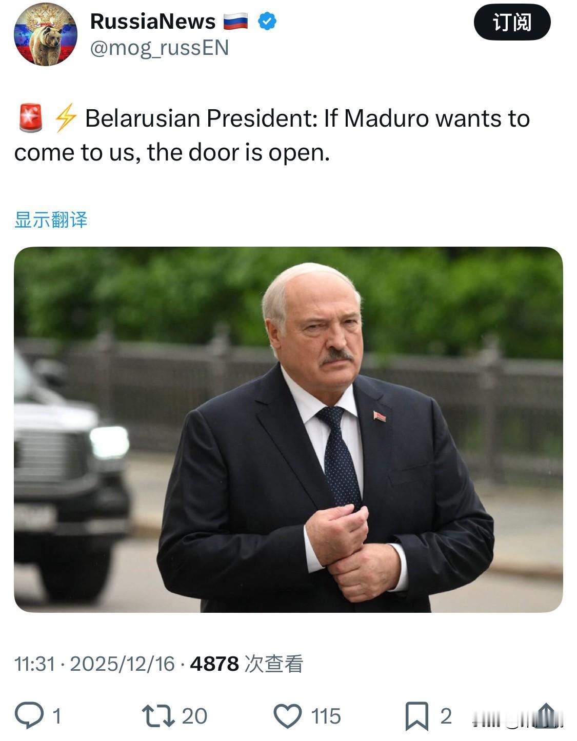 白俄罗斯总统卢卡申科称:如果马杜罗想来找我们,大门是敞开的。