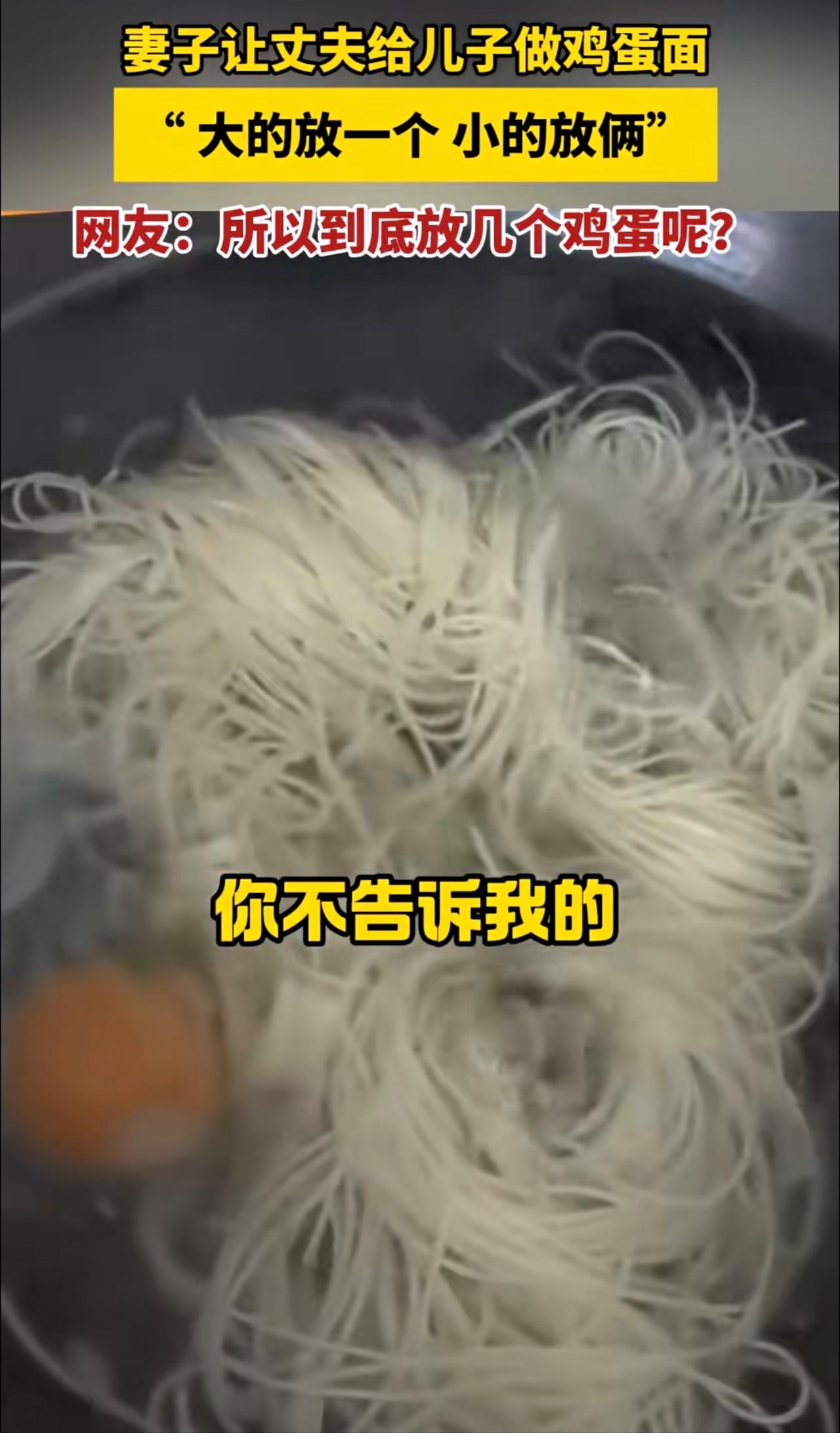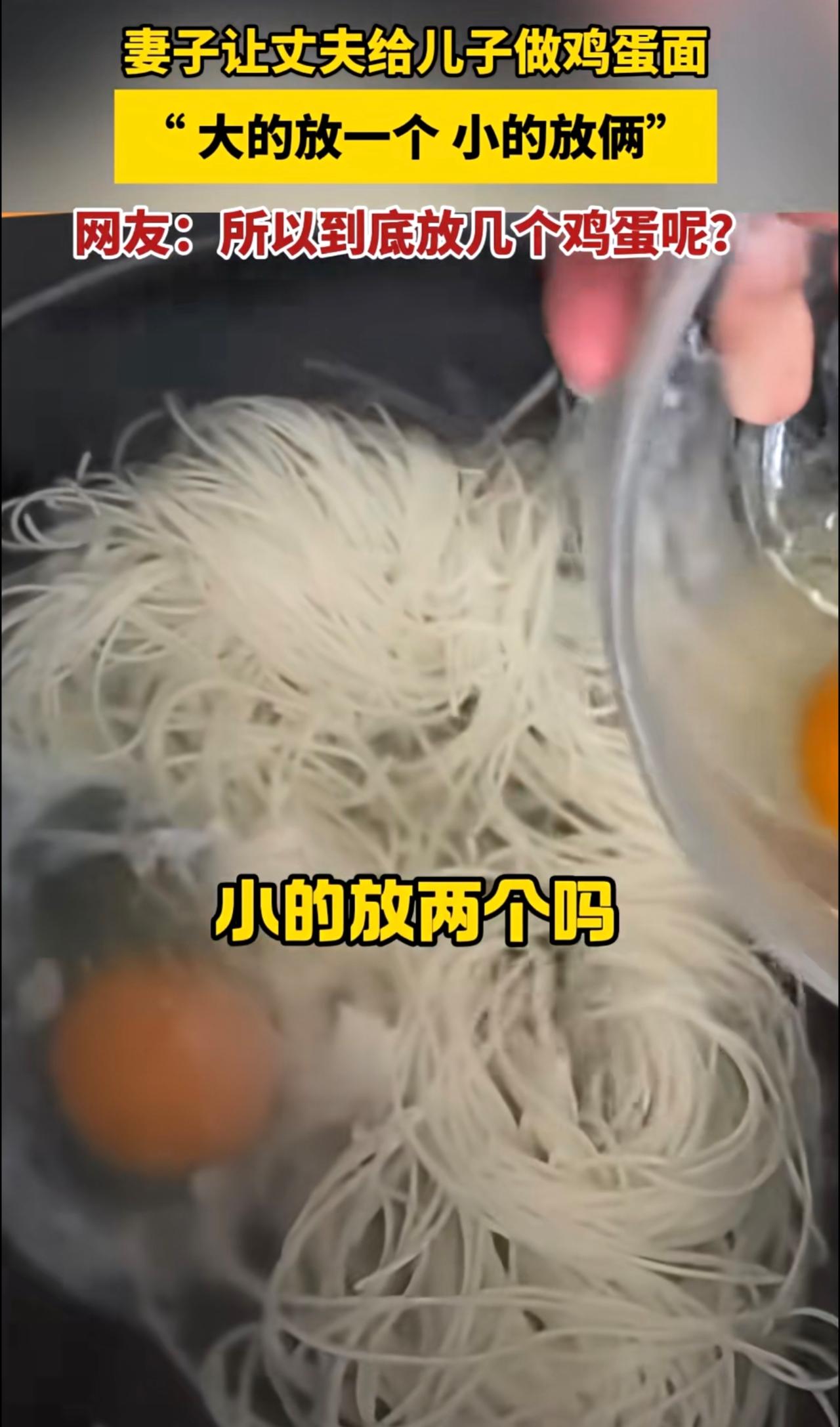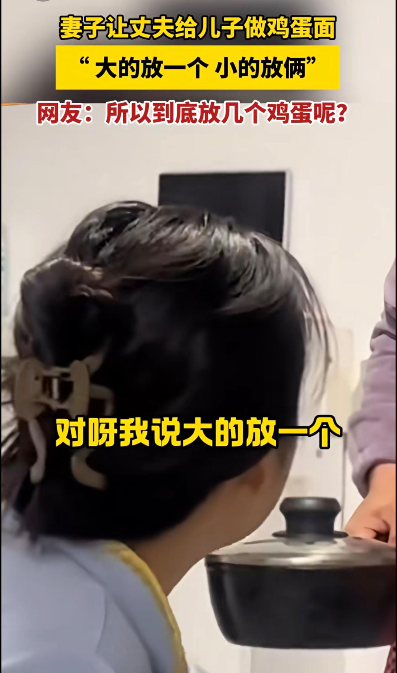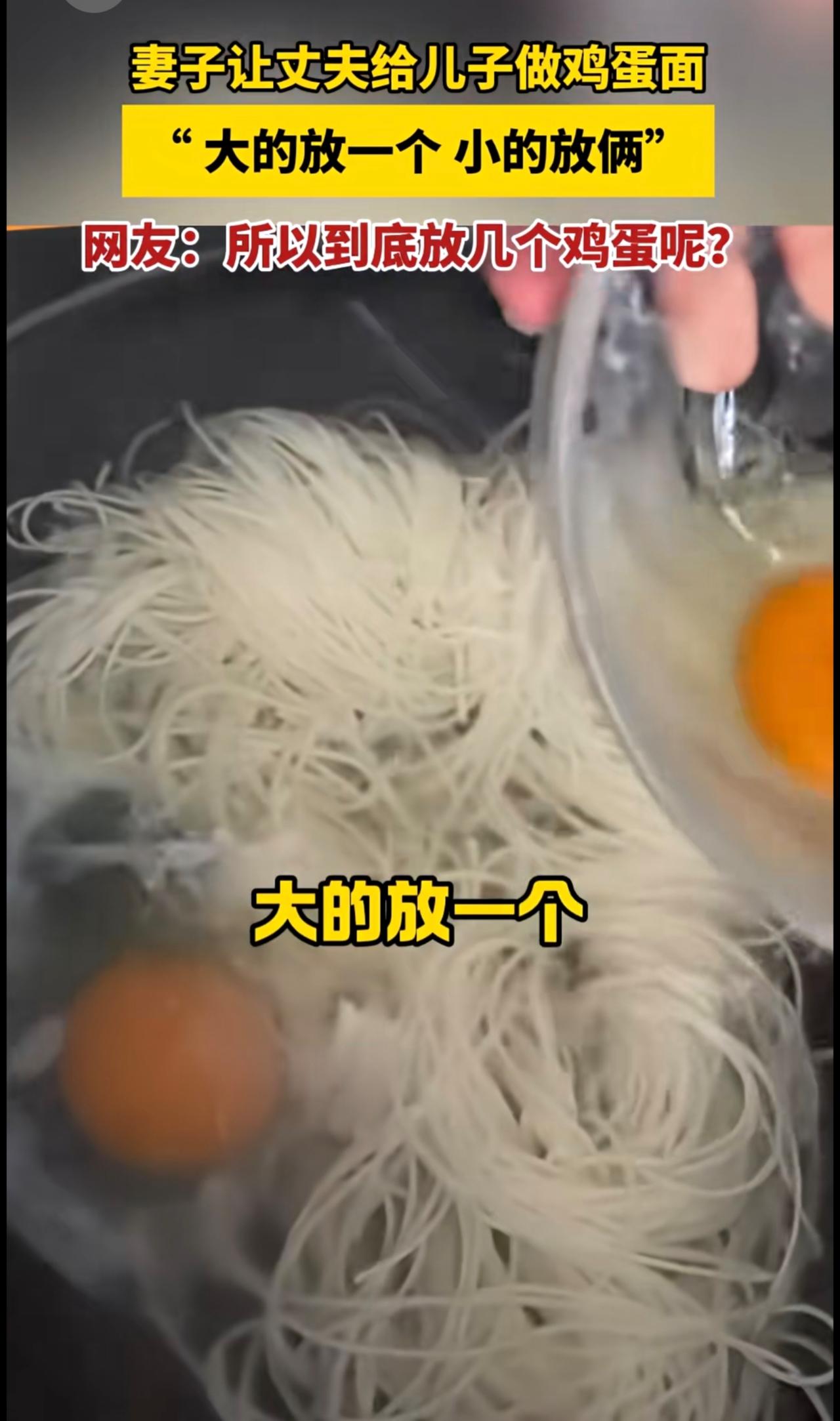 妻子让丈夫给儿子做鸡蛋面 “大的放一个 小的放俩” 网友:所以到底放几个鸡蛋呢?