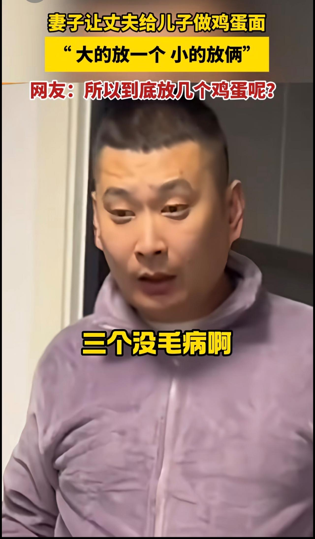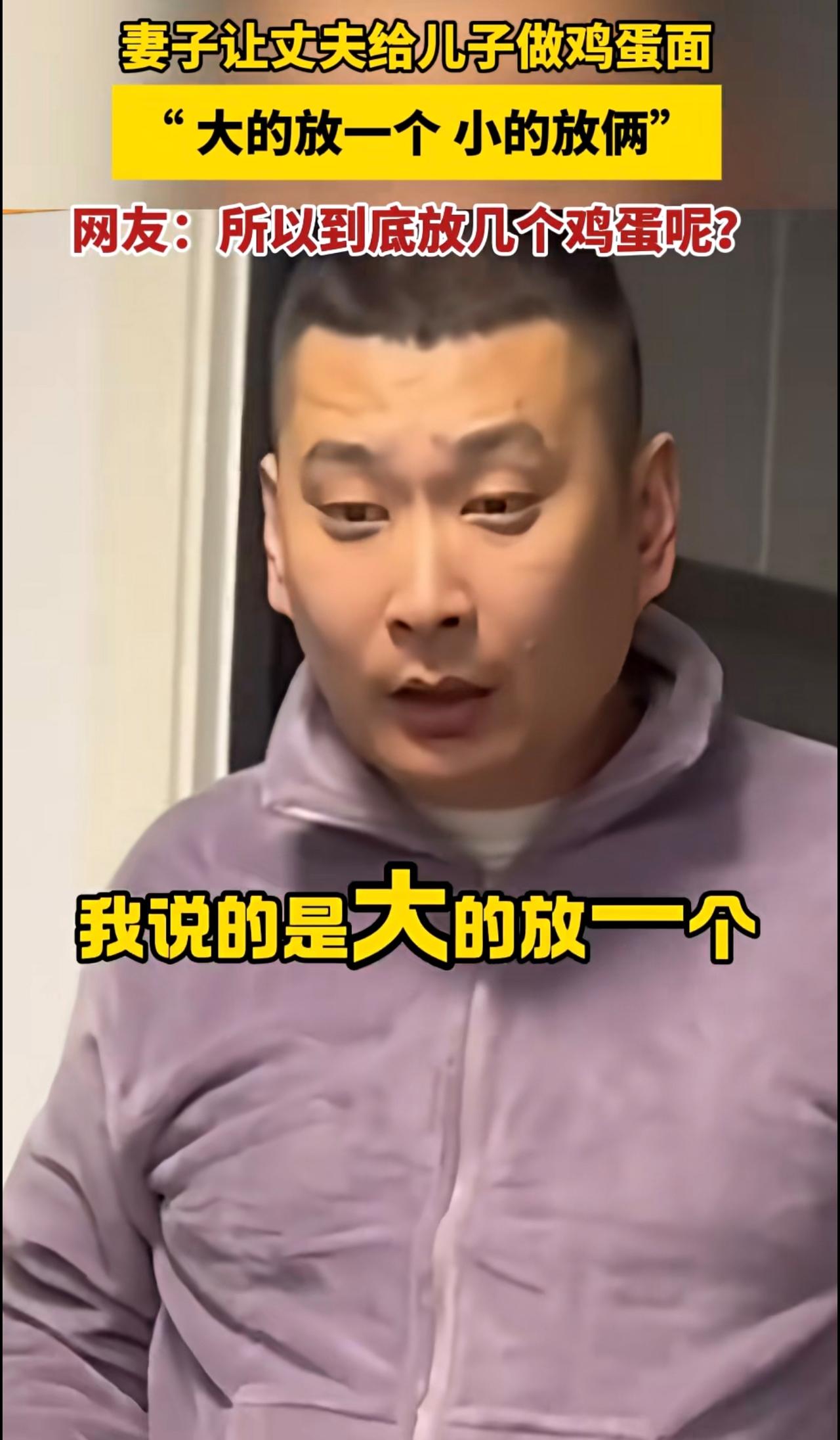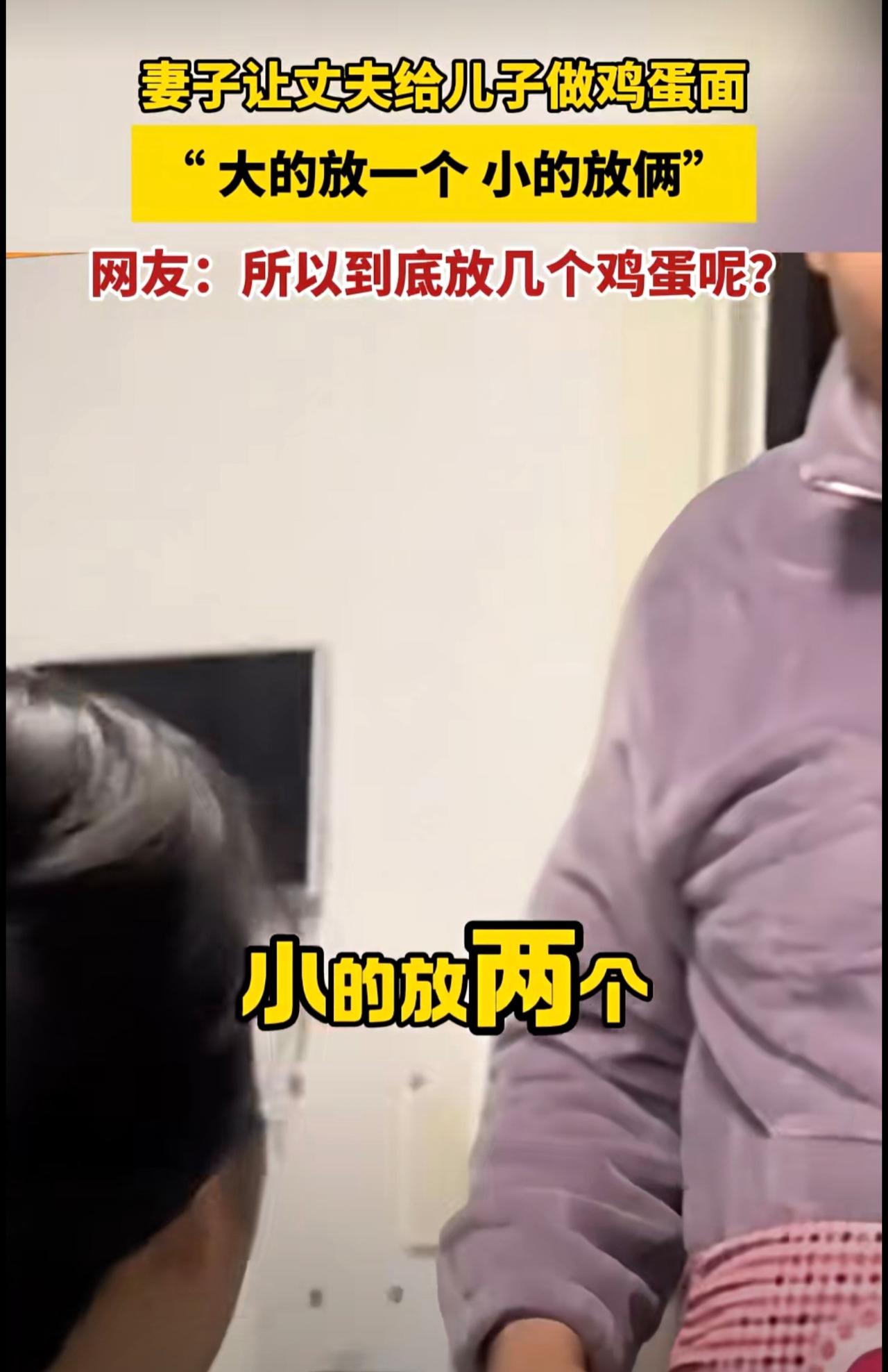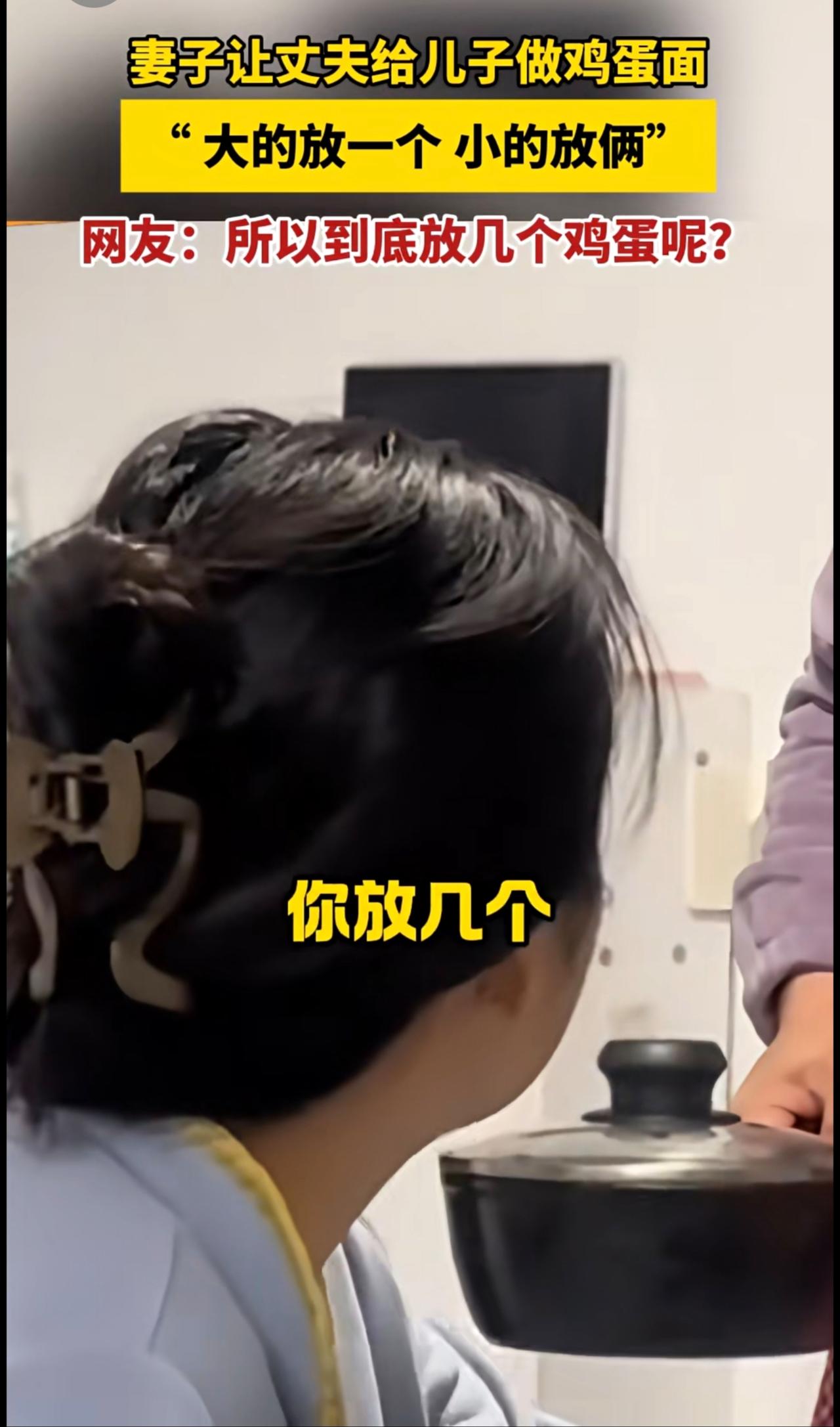 妻子让丈夫给儿子做鸡蛋面 “大的放一个 小的放俩” 网友:所以到底放几个鸡蛋呢?