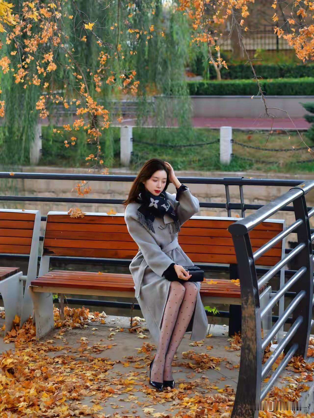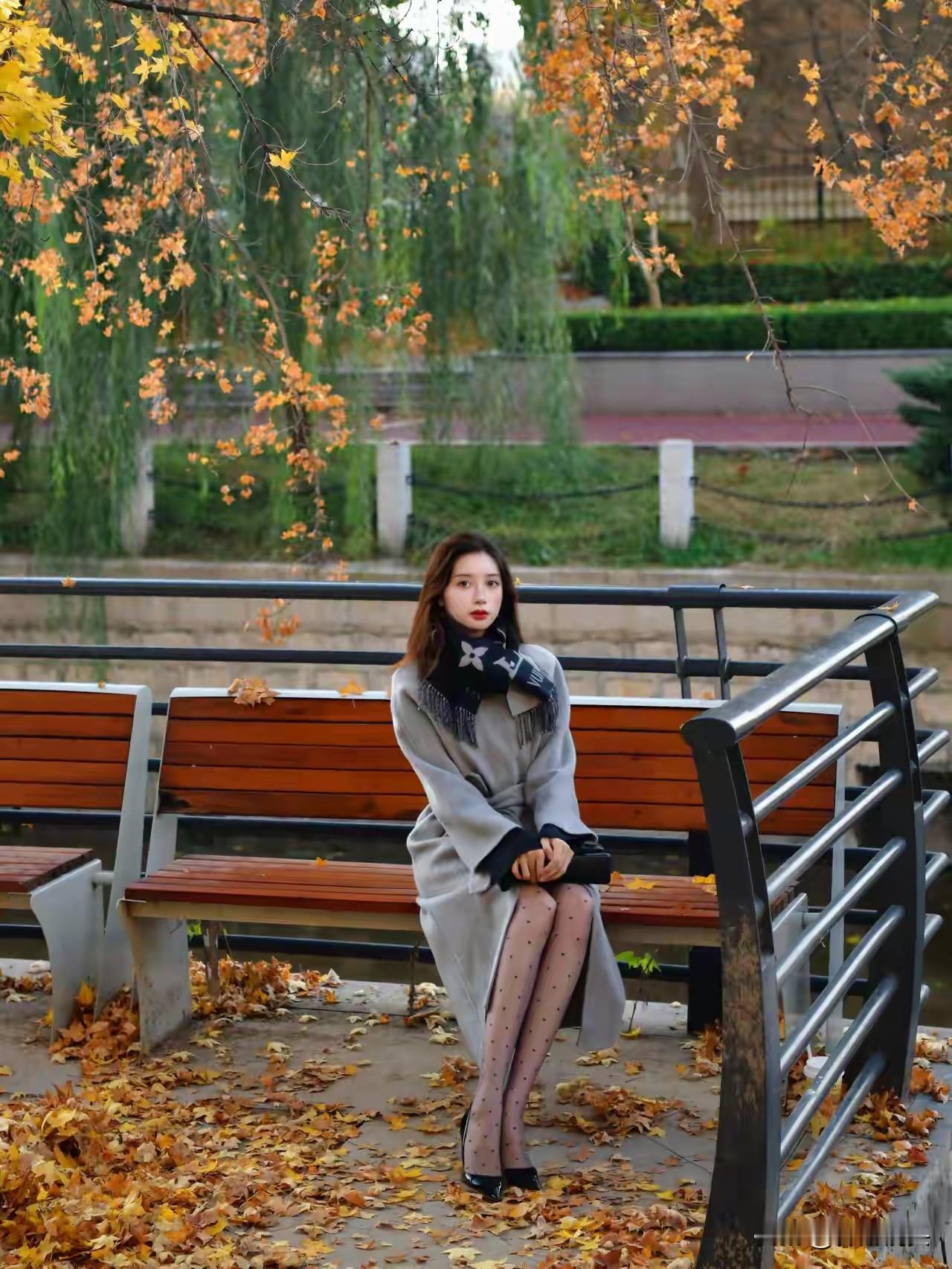 秋日漫步,落叶飘零,时尚穿搭,温暖相伴。