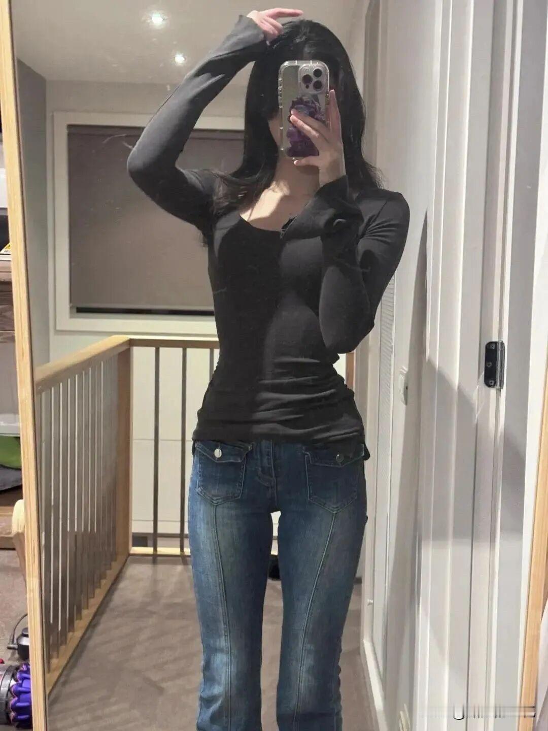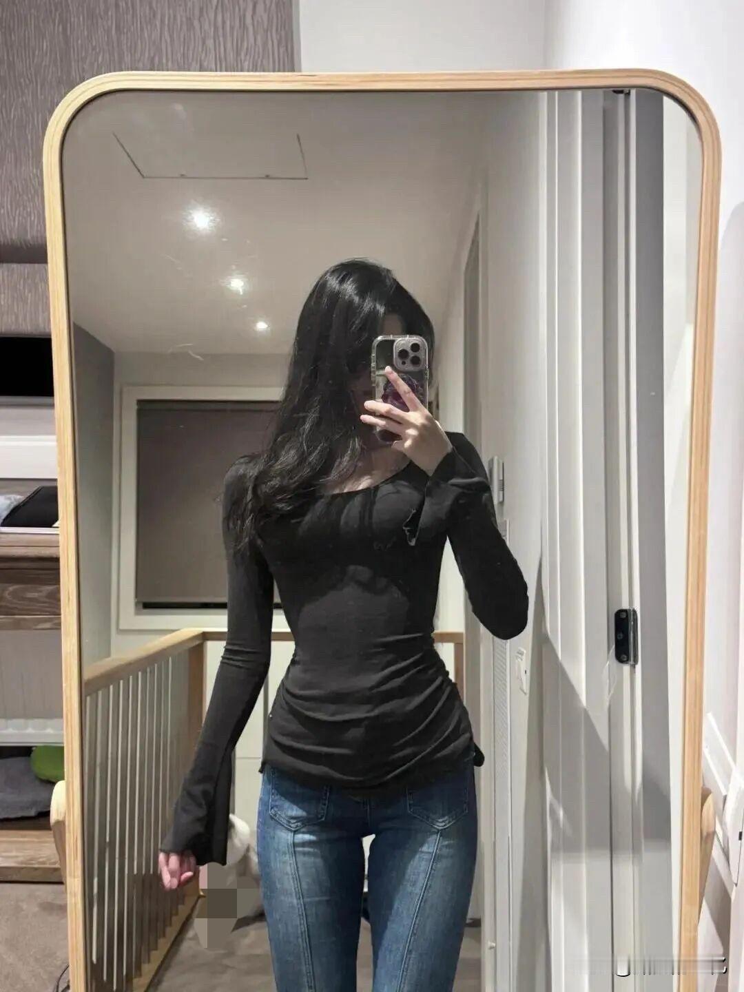 身材有多惊艳?黑上衣搭配牛仔裤,一目了然![比心][比心][比心] 黑色搭配穿搭 牛仔裤上衣搭配