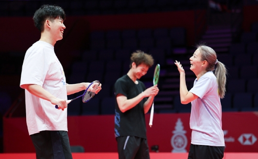 作为总决赛解说嘉宾的黄雅琼和刘雨辰今天加入到国羽的训练陪练工作当中来,昨天刚刚染了发的雅琼今天就出现在镜头前。