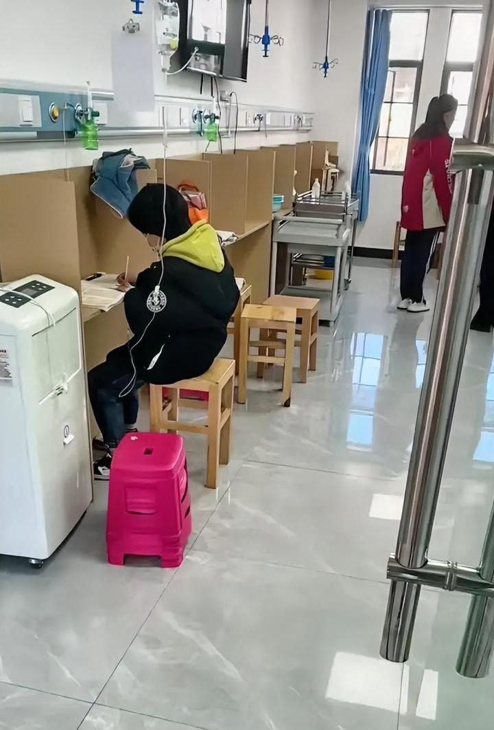 中国的小朋友真不容易,现在感冒输液只能打左手,因为右手要留着写作业。 现在不论是医院还是诊所,都专门装修了学生输液区,像是工作卡位一般,方便输液的孩子写作业。 看着一个个带病学习的孩子,上面点点滴滴,下面奋笔疾书,仿佛处于无声的战场,每个孩子既在与病魔作斗争,又在与同龄人比拼。 小小的年纪,就被套上了厚厚的枷锁,现在孩子被灌输的思想不是“生病了要好好休息”,而是“生病会耽误学习、不学习就要落后、生病时学习更显得刻苦”,这不仅是身体有病,心理也病得不轻。 中国人最擅长自我感动,输液的几个小时能写多少?脑袋浑浑噩噩的又能学到多少? 结果家长们非要把病房改造成自习室,空气里都是内卷和攀比的味道,没人想想孩子有多难受。 不得不说,在折磨孩子这一块,中国家长赢了。