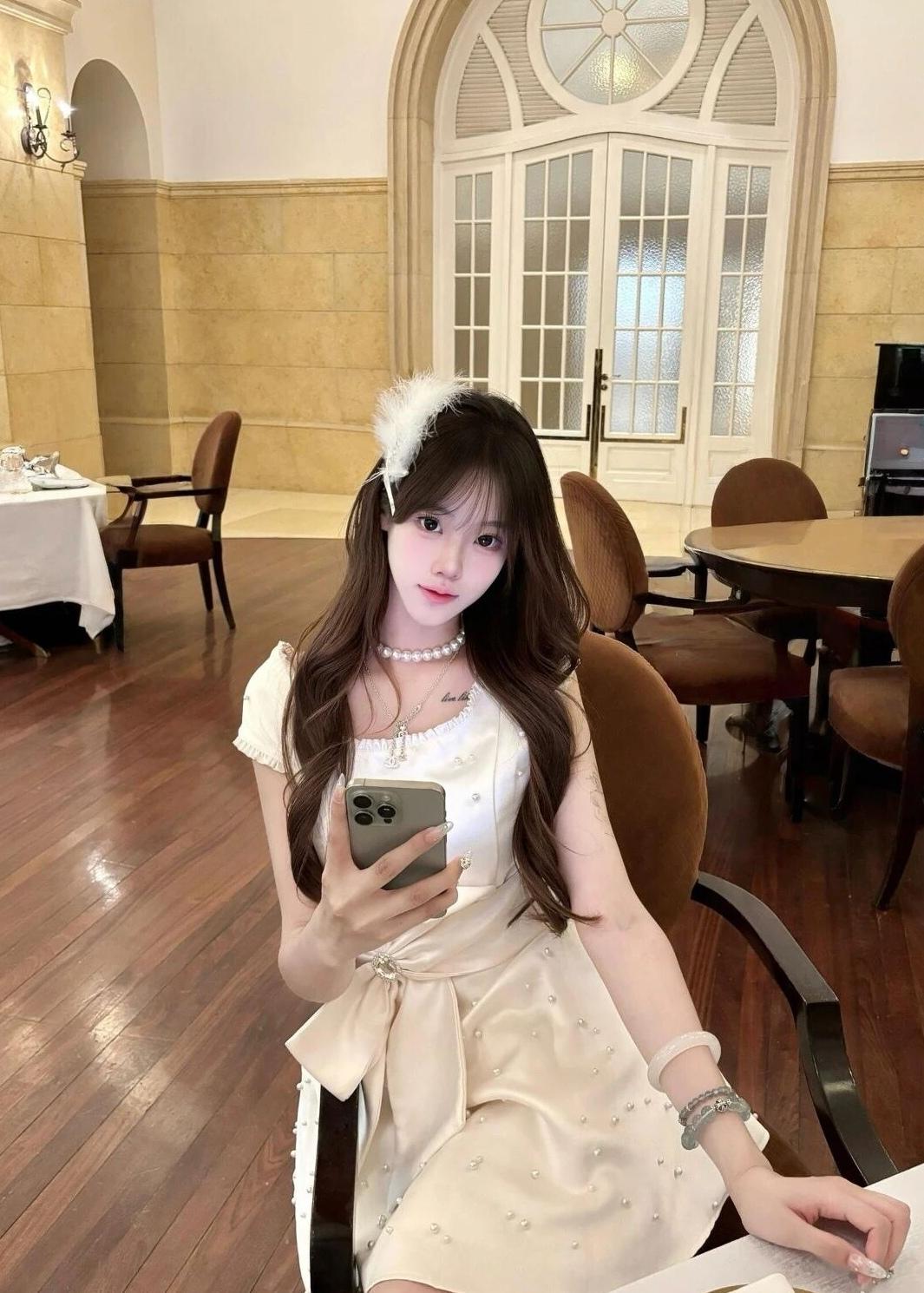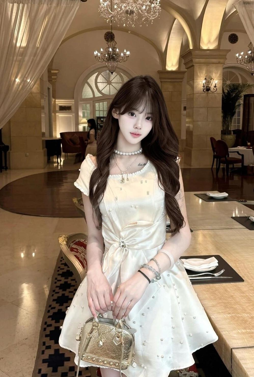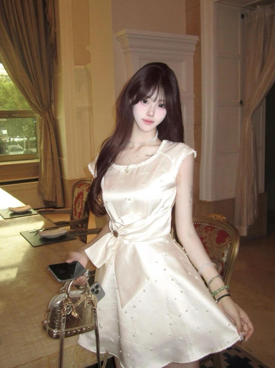 白裙藏尽东方韵烛影轻轻摇曳,晕开一室暖黄的光。她梳着精致的中式发髻,珠饰点