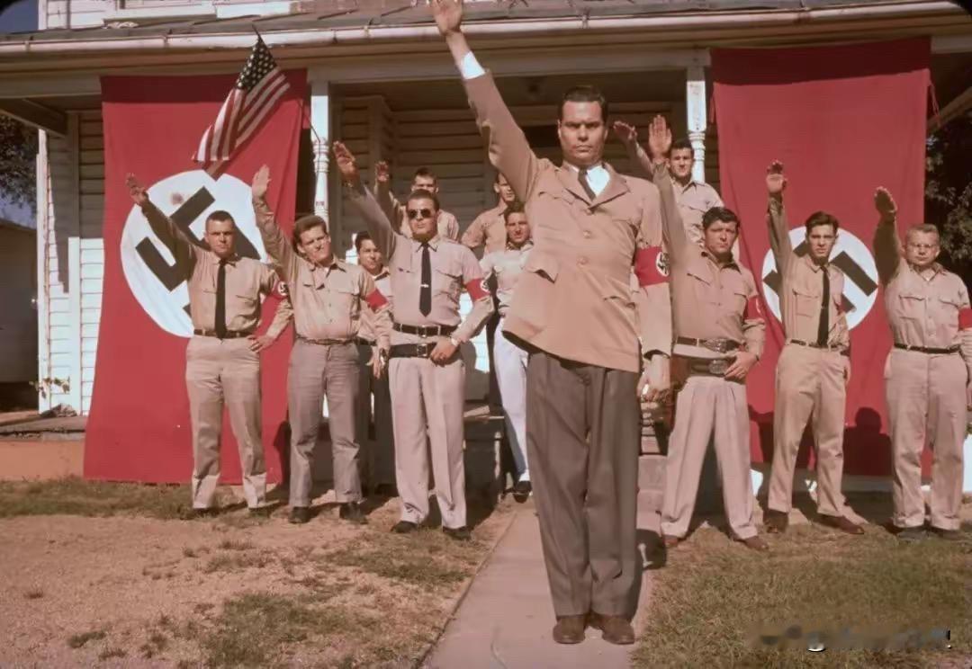 照片为美国纳粹党党徒。 提起美国纳粹党(American Nazi Party),现在很多人可能觉得难以想象。但它确实存在过,是一个活在二战阴影下的极端组织。 它的创始人名叫乔治·林肯·洛克威尔,一个铁杆的希特勒崇拜者。1959年,他正式创立了这个党。他们的核心思想就两点:一是认为“犹太人控制了一切”,是所有问题的根源;二是疯狂鼓吹“白人至上”,极端仇视黑人和其他少数族裔。 这个党从头到尾都没多少人,核心成员估计也就百来人。它从来都不是什么主流势力,绝大多数美国人对他们只有厌恶和抵制。但他们特别懂得怎么吸引眼球、制造新闻。他们最常干的事,就是穿上山寨的纳粹制服,举着旗子,专挑敏感时间和地点上街游行。在60年代民权运动风起云涌时,他们更是频繁跳出来,用各种方式骚扰和挑衅民权人士。说白了,他们就是想通过这种公然挑衅的行为,传播仇恨,并吸引那些同样极端的人。 1967年,洛克威尔被自己党内一个不满的成员给枪杀了。树倒猢狲散,这个党随后就迅速衰落、分裂了,后来虽然改过几次名字,但基本没什么影响力了。 不过,它倒是留下了一个意想不到的“遗产”。到70年代,它的徒子徒孙曾想在芝加哥一个犹太人聚居的社区游行,这场法律纠纷一路闹到最高法院,最后变成了美国关于“言论自由到底能不能保护仇恨言论”的经典案例。 美国种族主义 历史 历史老照片 美国