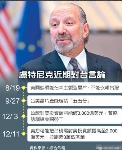 短短一周左右的时间,美商务部长卢特尼克接连放话,先说台湾投资美国金额可望破3000亿美元,并会协助训练美国本地的半导体员工;接著又加码称台积电须投资到2000亿美元,为美国增加三万个就业机会。 这一连串数字游戏背后,藏着美国想要把台湾半导体产业连根拔起的真实意图。 这里头有个关键点很多人没注意到,前面说的3000亿美元,那是台湾当局投资美国基础建设的钱,台积电的投资部分根本没算在里面。 而台积电自己一直说的就是投资1000亿美元,特朗普却几度加码,最高喊到3000亿,现在卢特尼克说2000亿,表面看好像给了"优惠",实际上还是比原计划多了1000亿。 卢特尼克在CNBC专访时说得更直白,他批评拜登政府给台积电约60亿美元补助,只换来600亿美元的厂房投资,"我们觉得那不对"。 他直言特朗普政府会让台积电在美国设厂投资超过2000亿美元,创造3万个工作机会,"这才是我们应该做的事"。这种口气,完全是把台积电当成美国企业来使唤。 台积电原本在美国亚利桑那州的投资计划是建3座晶圆厂,今年3月初宣布追加至少1000亿美元,用于兴建3座晶圆厂、2座先进封装厂和1座研发中心,总投资达到1650亿美元。现在美国又要加码到2000亿,这种层层加码的做法,摆明了就是吃定台湾。 更让人担心的是,卢特尼克还证实了协议内容确实包括台湾人员训练美国劳工打造先进半导体。他毫不掩饰地说:"我们的最终目标是把供应链转移到美国,在美国生产半导体和药品,并培训美国人从事这些工作。让整个供应链都留在美国。这就是我们的最终目标。"这话说得够明白了,美国就是要整个半导体供应链都搬到美国去。 这种赤裸裸的产业掠夺,民进党当局却还在粉饰太平。台行政机构经贸办总谈判代表杨珍妮之前还否认,说"这不在谈判条件当中",结果被卢特尼克直接打脸。 这种"未谈先跪"、"打左脸送右脸"的做法,连岛内网民都看不下去了,纷纷留言痛批"无能民进党执政自缚手脚和美国谈判"、"没救了"、"台积电过去了、供应链过去了、技术被偷走了、台湾劳工也被取代"。 美国对台湾的压榨还不止这些。根据外媒报道,美国要求台湾在美投资3500亿至5500亿美元,这个数字占台湾2024年生产总值的44%至69%,占台湾外汇储备的58%至92%。这么大的金额,民进党当局居然还在谈什么"台湾模式",这哪是什么模式,分明就是"跪美模式",是卖台的遮羞布。 台积电被迫赴美投资,已经让岛内业界恐慌、民怨沸腾。国民党民代赖士葆质疑,台积电不仅单一企业赴美,连同供应链恐将一并外移,"掏空台湾到底换到什么"? 台北商业大学财税系教授黄耀辉也示警,对外投资增加势必排挤岛内投资,若将整个产业生态系统外移,美国投资比重拉高,恐使台湾出口大幅缩水,进而导致台湾经济增长率与GDP逐年下滑,对整体经济造成长期冲击。 美国这种明抢的做法,连岛内学者都看不下去。有评论指出,美国不需任何正当理由,就可从台湾搬走巨额金钱,实际上就是敲诈、勒索、明抢,比19世纪的帝国主义者还心狠手辣。美国的胃口只会与时俱增,这显然是个口子很大的无底洞,以台湾地区的体量能满足多久? 国台办发言人陈斌华对此表示严重关切,指出赖清德当局为了"倚外谋独"无底线对美输诚,在关税谈判上"未谈先跪"、"打左脸送右脸",甚至对民众一骗再骗;在产业上任由美国予取予求,主动奉送台积电,任其榨干台湾优势产业价值。 此前,台积电被迫宣布在美加码投资1000亿美元,已使岛内业界恐慌、民怨沸腾。此次3000亿美元投资一旦落地,势必对台湾经济造成巨大冲击,台湾经济的发展动能和自主性将被进一步削弱。 美国对台湾的压榨,说到底就是看准了民进党当局"倚美谋独"的心理,把台湾当成提款机。从台积电的投资到整个半导体供应链的转移,再到天价军购,台湾几代人辛苦打拼积累的资产正在被一点点掏空。这种把国家命脉拱手让人的做法,最终只会让台湾经济陷入困境,产业空洞化,民众利益受损。 岛内舆论指出,加上赖清德许诺的400亿美元军购,台湾三代人存下的家底就要被败光。这种把台湾经济命脉当投名状的做法,不仅损害台湾产业发展根基,更会严重危害台湾民众的生计和未来。希望台湾民众和各界有识之士团结起来、行动起来,坚决反对赖清德当局的媚美行径,积极维护自身利益。
